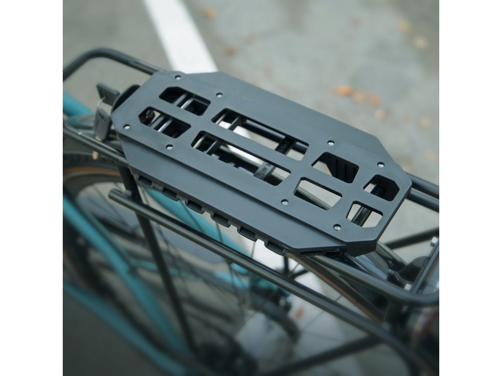 Adaptér SKS Monkey Loadt Plate zahrnuje speciální tlumící vrstvu, která zajišťuje, že předměty pevně a bezpečně sedí, je uživatelsky přívětivý a umožňuje rychlé a beznástrojové připevnění a odepnutí tašek nebo košíků.