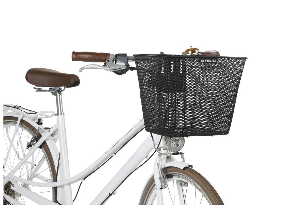 Objavte predný kôš Basil Bilbao - dokonalú kombináciu štýlu a funkčnosti. Tento košík na bicykel sa montuje na riadidlá vášho bicykla. Chodíte pravidelne nakupovať do supermarketu alebo radi chodíte na trh? Potom príde vhod tento robustný košík na bicykel z jemnej ocele. Samozrejme košík môžete využiť aj na iné účely. Umiestnite do nej napríklad kabelku alebo malú športovú tašku.
