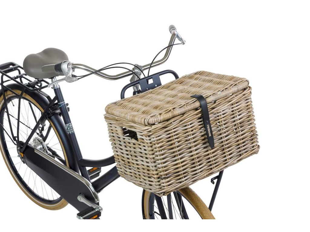 Basil Dax L je krásny, priestranný ratanový kôš na bicykel, ktorý vyniká krásnym tvarom a sivou farbou. Či už idete na výlet, bicyklujete do školy alebo sa len tak príležitostne sa povozíte na bicykli, tento kôš je ideálny na prepravu vašich vecí. Kôš má praktický kryt s koženým remienkovým uzáverom, ktorý udrží vaše veci bezpečne uložené.