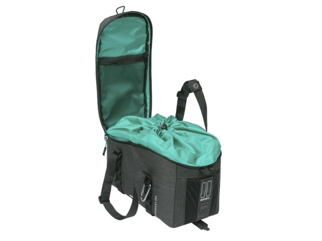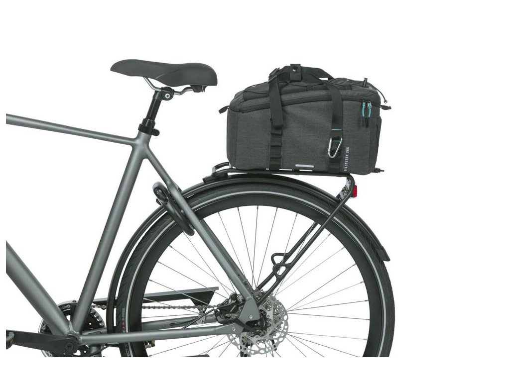 Basil Discovery 365D M MIK je športová taška na zadný nosič. Táto taška na bicykel má objem 9 litrov a je dodávaná v čiernej melanžovej farbe. Je vhodný pre dámske aj pánske bicykle a obsahuje praktickú karabínku. Taška má tiež chlopňu s elastickým vreckom a šnúrkou. Takto môžete mať svoje veci na svojom mieste. Chcete si so sebou vziať ďalšiu fľašu? To je možné, pretože taška má na boku ďalšie elastické vrecko.