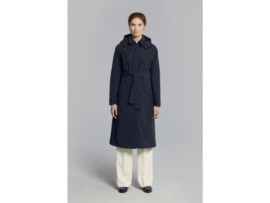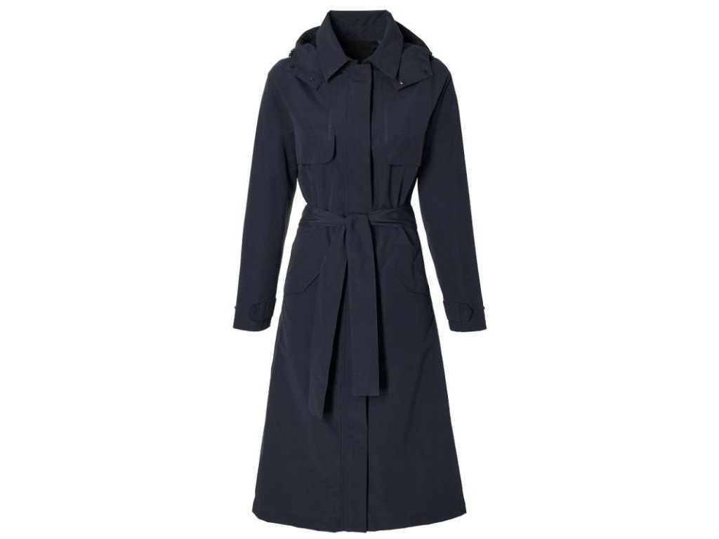 Štýlový dámsky nepremokavý kabát na bicykel. Vyrobený z materiálu T-Fabric, ktorý disponuje vodoodolnosťou 5.000 mm a priepustnosťou vodných pár 5.000 g/m2/24h. DWR vodu odpudivé ošetrenie. Podšívka, vetranie vpredu i vzadu, bočné vrecká, predný zips s otváraním z vrchu i zo spodku, cyklo funkcia, odnímateľná kapucňa. Reflexné prvky tón v tóne. Prepravný obal. Veľkosti XS-XLMateriálové zloženie:100% POLYESTER