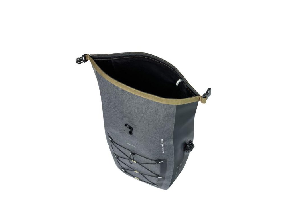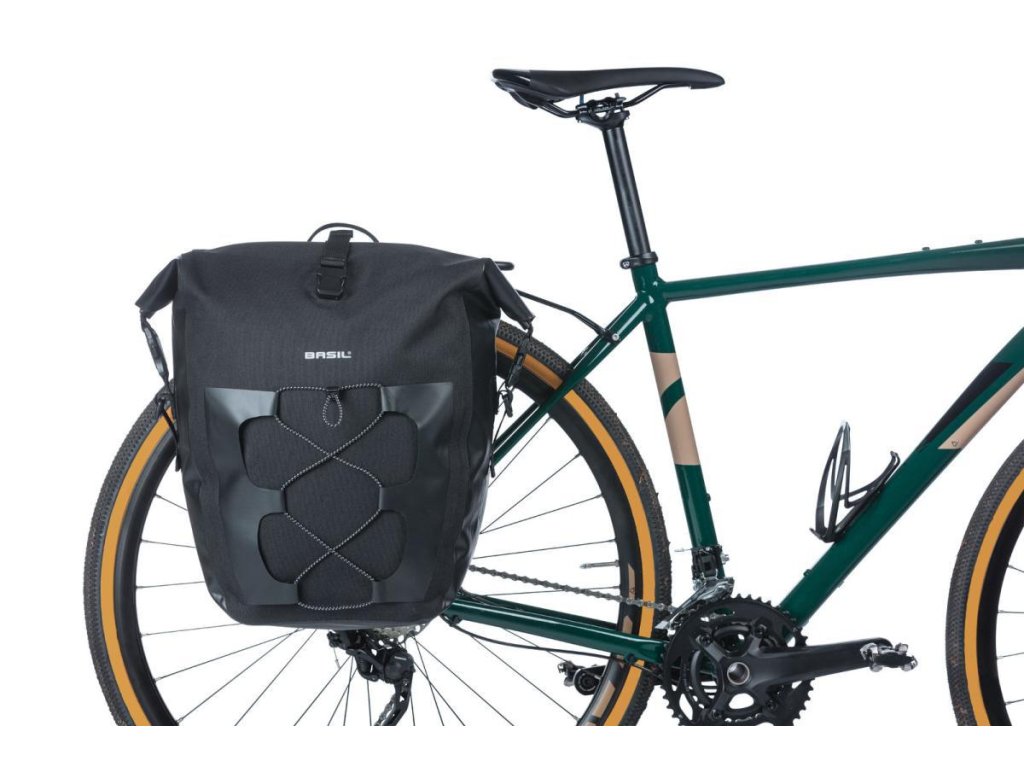 S taškou na bicykel Basil Navigator Storm MIK SIDE vo veľkosti L si vyberáte športovú a funkčnú tašku na bicykel. S touto taškou sa môžete vydať na akékoľvek dobrodružstvo. Je 100% vodoodolná, vyrobená z kvalitnej vodoodolnej (IPX3) látky. Funkčný dizajn zaisťuje, že v tejto taške ľahko prepravíte všetko, čo potrebujete. Všetko bolo myslené tak, aby ste si čo najpraktickejšie zobrali svoje veci kamkoľvek idete. Vďaka nastaviteľnej elastickej šnúrke je priestor pre cyklistickú prilbu či bundu a tašku je možné jednoducho uzavrieť rolovacím uzáverom. Tento rolovací uzáver je možné pripevniť tromi spôsobmi. Cestovanie v tme? Žiaden problém! S reflexnými logami Basil na 3 stranách budete viditeľní. Vždy budete pripravení. Pomocou systému MIK SIDE ju môžete rýchlo a jednoducho pripevniť či vymeniť príslušenstvo na nosiči. S MIK SIDE tak na svoj nosič nielen nasadíte tašku alebo košík, ale môžete si ďalšie tašky nacvaknúť aj na bočnú stranu nosiča. Tento praktický systém vám umožní pohodlne nasadiť a zložiť akúkoľvek tašku z bicykla v priebehu niekoľkých sekúnd. Čo potrebuješ? Taška s MIK SIDE a nosič s tromi upevňovacími bodmi. Ak takýto nosič nemáte, stále môžete tento šikovný systém používať pomocou samostatne dostupného adaptéra MIK Frame.