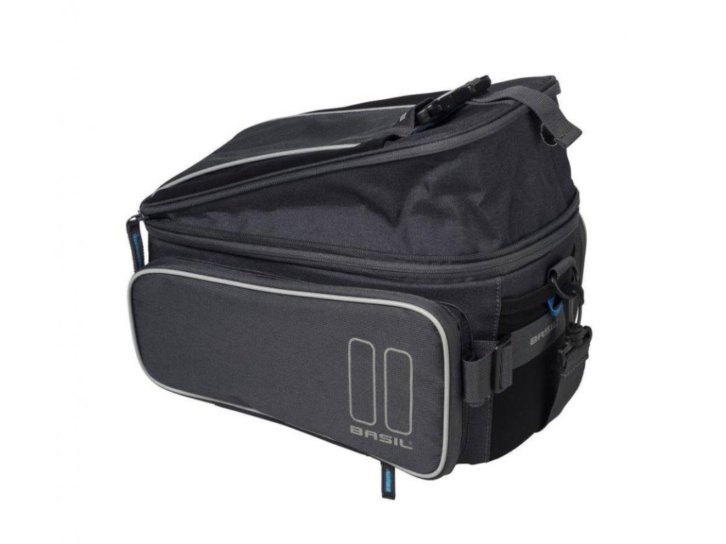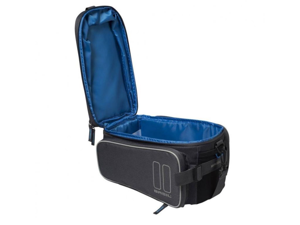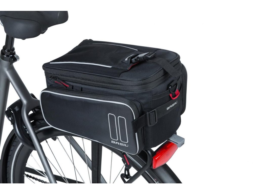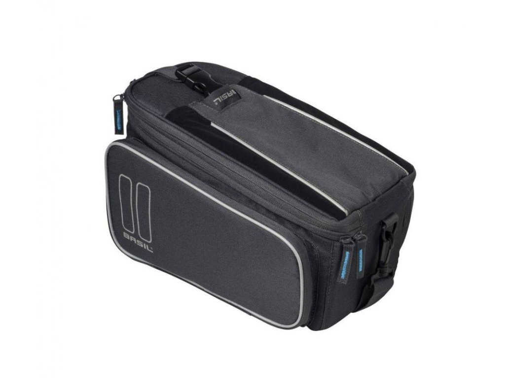 Basil Sport Design Trunk Bag MIK je priestranná taška na batožinu s kapacitou 7 až 15 litrov. Taška je vybavená rôznymi priehradkami so zipsom, čím si vytvoríte viac miesta pre svoje potrebné drobnosti. Taška na nosič je vybavená adaptérom MIK (70171) a je preto vhodná pre nosiče MIK alebo nosiče s MIK doskou. Vďaka tomuto systému môžete tašku bez problémov nacvaknúť na nosič a rovnako i odpojiť. Odnímateľný ramenný popruh vám umožní nosiť tašku pohodlne cez rameno, keď práve nebicyklujete.