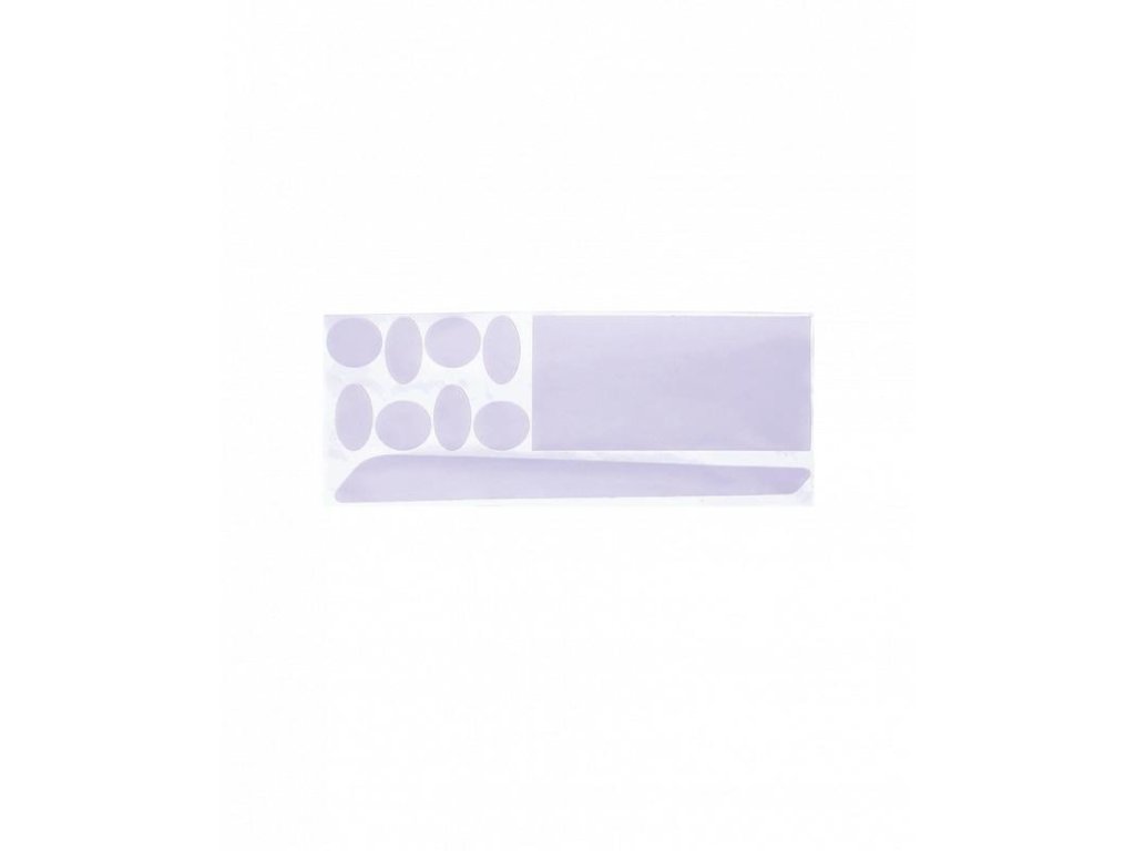 Hrubé priliehavé nálepky chrániace povrch bicykla. Extra odolné.Sada BBP-57 obsahuje: chránič zadnej stavby, 4 x 30 mm nálepka, 4 x 20x40 mm nálepka a 80 x 152 mm obdĺžniková nálepka, upraviteľná podľa potreby. Robustné, vode odolné a ohybné, vhodné do akýchkoľvek podmienok.Farba: transparentná.