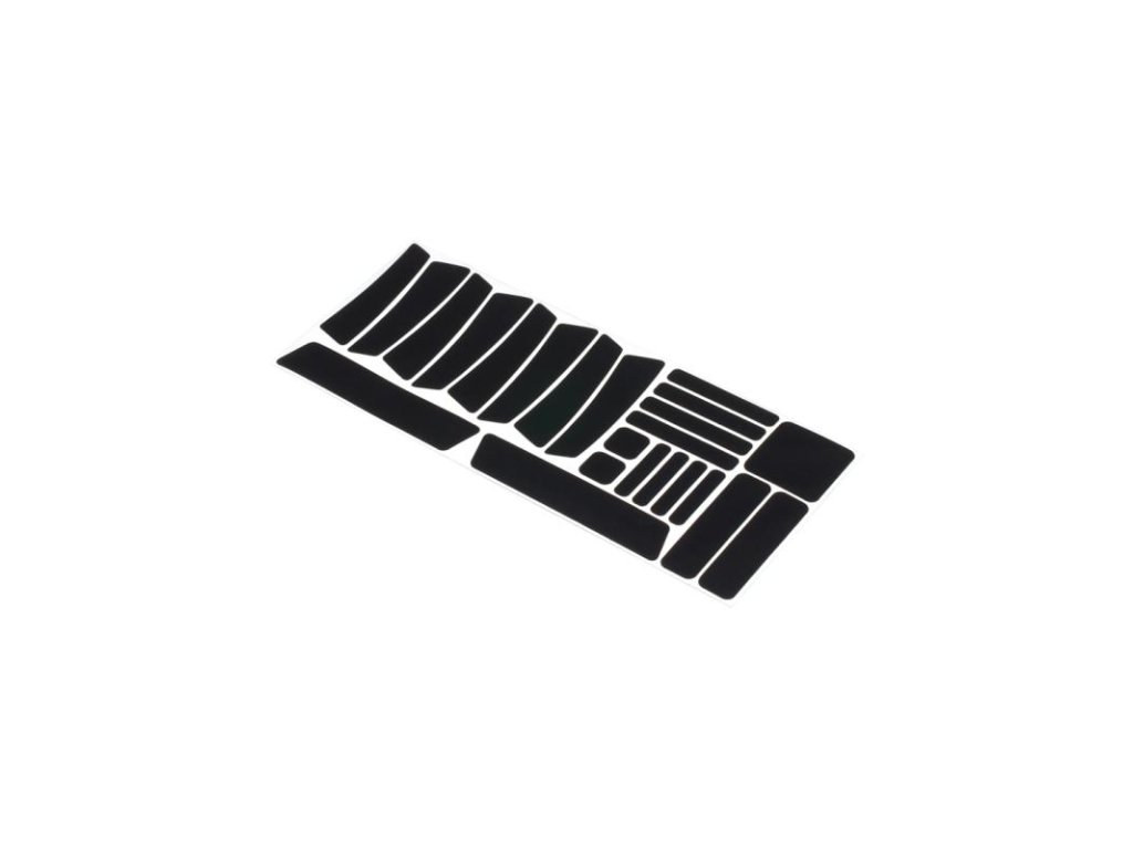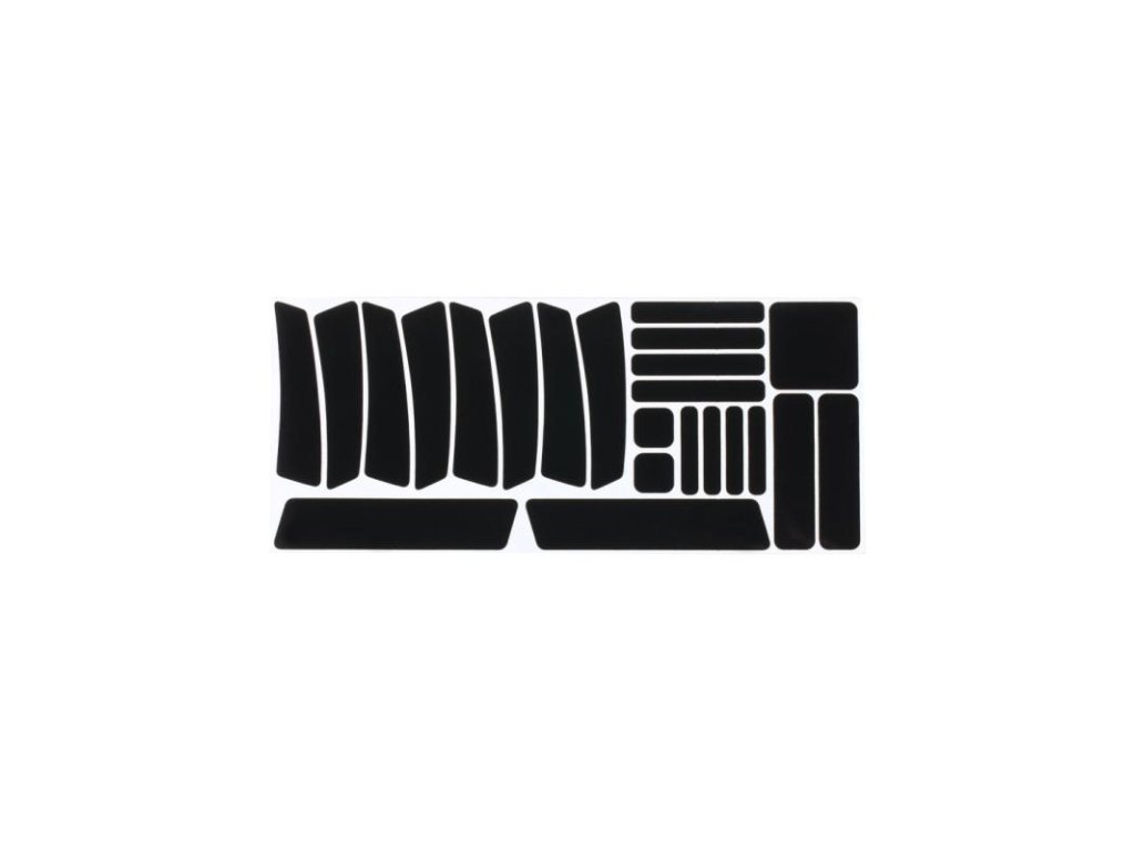 Čierne reflexné ochranné nálepky na rámDecentná ochrana a bezpečnosť zároveňPoužitie na rám, kolesá, prilbu, obuv a iné časti bicykla23ks nálepiek v 7-mych rôznych tvaroch pre polep celého bicykla