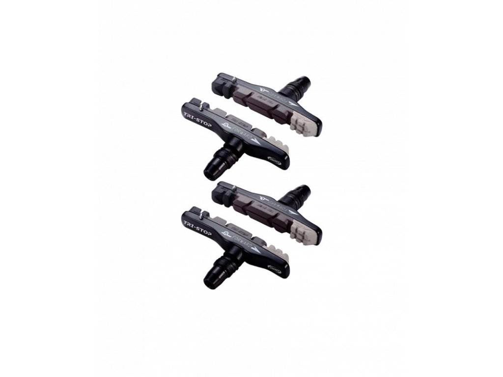 Model s vymeniteľnými brzdovými gumičkami.Trojfarebný Triple contour dizajn.Kompatibilné s Shimano V-brzdovými systémami.2 páry v balení.