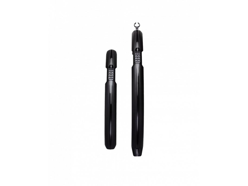 Set obsahujúci predný a zadný blatník.Špeciálna geometria poskytuje väčšiu ochranu pred špinou a vodou v kombinácii s perfektným uchytením na väčšinu bicyklov, aj tých s širšími plášťami.Objímka na sedlovú rúru pre zvýšenie stability.Dvojfarebný kompozitný materiál.Kompatibilné s 26” a 28” bicyklami.