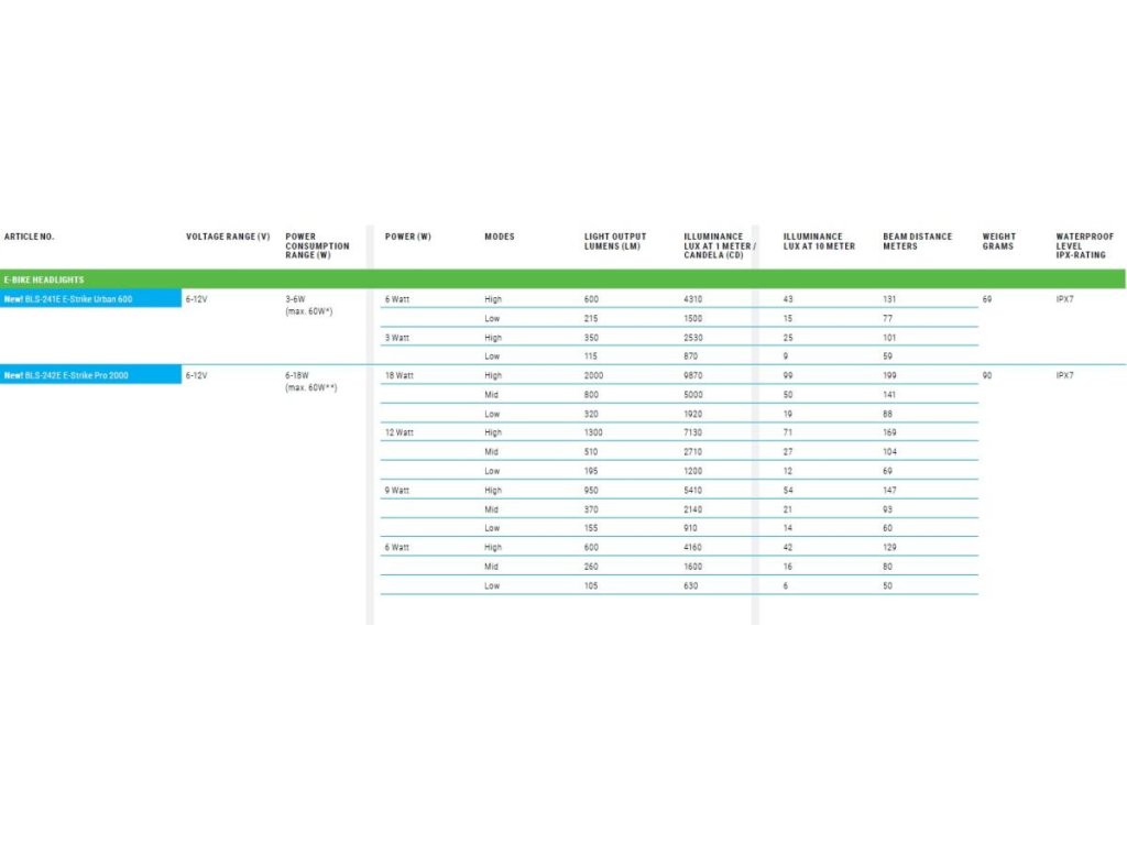 Kompatibilné so systémami E-bike s napätím 6-12V a výkonom 3-6W (max.60W). Toto svetlo na e-bike má svetelný lúč vhodný do mestskej premávky aby neoslňoval, pričom stále ponúka jasné svetlo pre jazdu na ceste Súčasťou balenia je diaľkové ovládanie pre jednoduché ovládanie svetla Svetlo vhodné pre akýkoľvek držiak GoPro, je dodávané so stredovým držiakom a ten je kompatibilný s riadidlami priemeru 35,0/31,8 a 25,4 mm Vysoko kvalitné svetlo s hliníkovým telom je chránené proti prehriatiuRežimy: diaľkové a stretávacie svetlo, vypnutéMax. svetelný výkon 600 LúmenovKompatibilita s jednotlivými pohonmi viď. záložka špecifikáciaPripojovací kábel súčasťou baleniaOchrana voči vode: IPX7Hmotnosť: 69g.Upozornenie