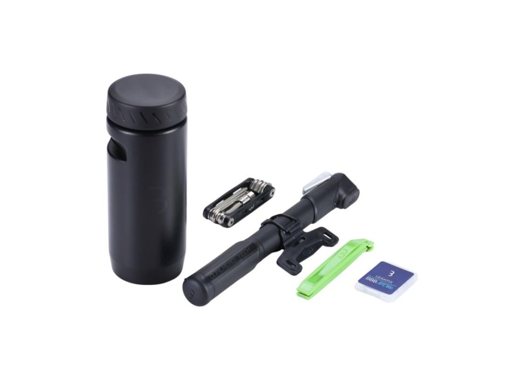 Fľaša BTL-18L ToolsTube na prevoz náradia a drobností s náradím, obsahuje:BTL-141S MaxiFold S mini náradie s 10-timi funkciamiBMP-54 WindVawe mini pumpaBTL-81 EasyLift montážne páčky na pneu (2ks)BTL-89 LeakFix sada samolepiacich záplat na dušu