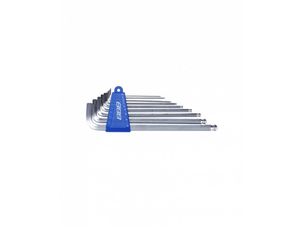 Sada 9-tich imbusových kľúčov v tvare L.Zaoblené ukončenie na jednej strane pre ťažko dostupné skrutky a priame na strane druhej pre maximálnu silu uťahovania. Dodávané s malým organizérom a označením, pre jednoduchšie odkladanie náradia.Náradie vyrobené z vysoko kvalitnej industriálnej ocele.Obsahuje: 1.5, 2, 2.5, 3, 4, 5, 6, 8, a 10 mm náradie.