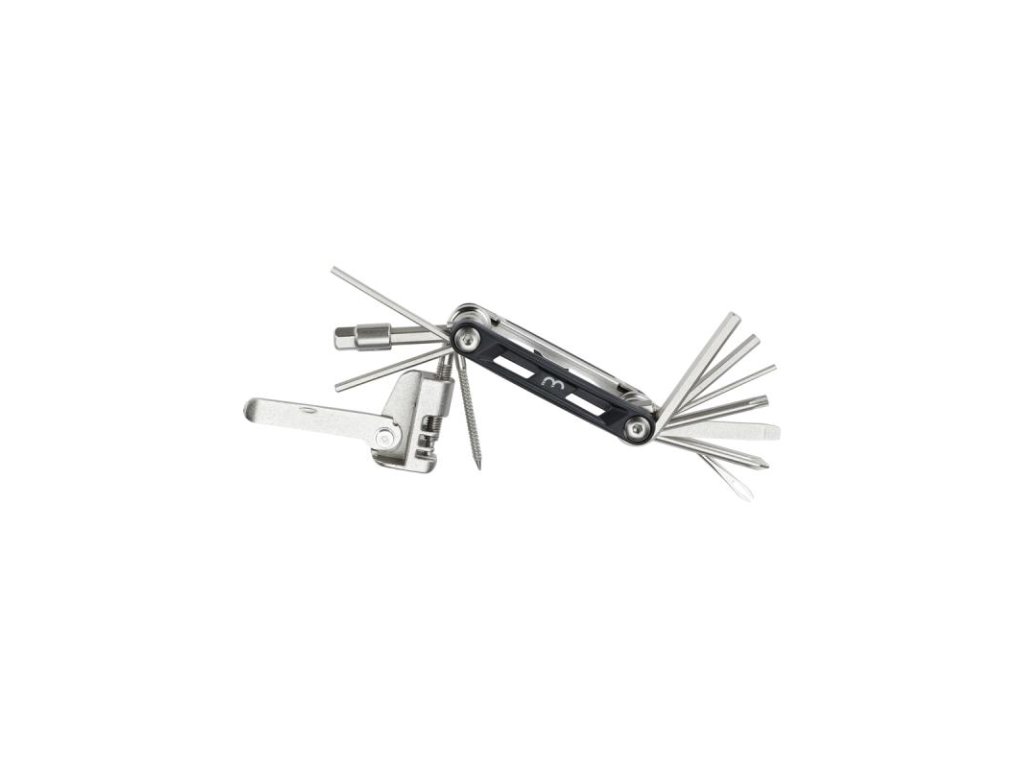 High-end skladacie náradie v odolnom hliníkovom puzdre. Kompaktnosť zaisťujú dve skrutky s imbusovou hlavou. 14 funkcií. Dvojica náradia na opravu bezdušových pneuImbusové kľúče: 2, 2,5, 3, 4, 5, 6, 8 mm. Krížový (PH3) a plochý (SL-6) skrutkovač. Torx T25. Mont-páčka Nitovač reťaze.