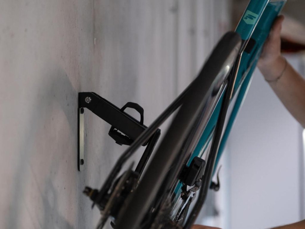 Minimalistický držiak bicykla na stenu so zavesením bicykla za pedál