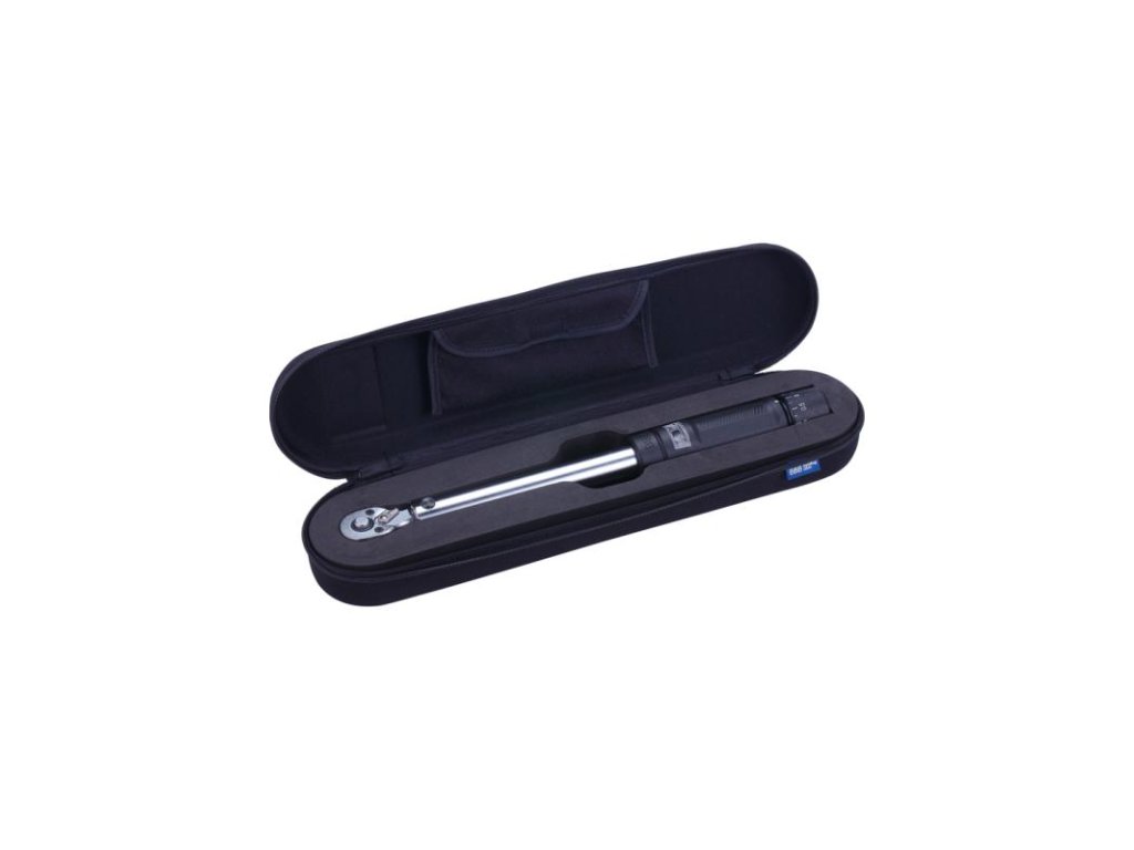 Momentový kľúč s 1/2“ nadstavcom a nastavením momentu po 0,25 Nm. Vhodný pre pravákov ako i ľavákov.Mechanizmus, ktorý kliknutím indikuje dosiahnutie nastavenej hodnoty. Dĺžka 355mm pre jednoduchšie dosiahnutie maximálneho momentu.Rozsah: 10 – 60 Nm, veľmi jemné nastavenie. Individuálne počítačom kalibrovaný. Možné opäť rekalibrovať. Dodávané v odolnom obale.
