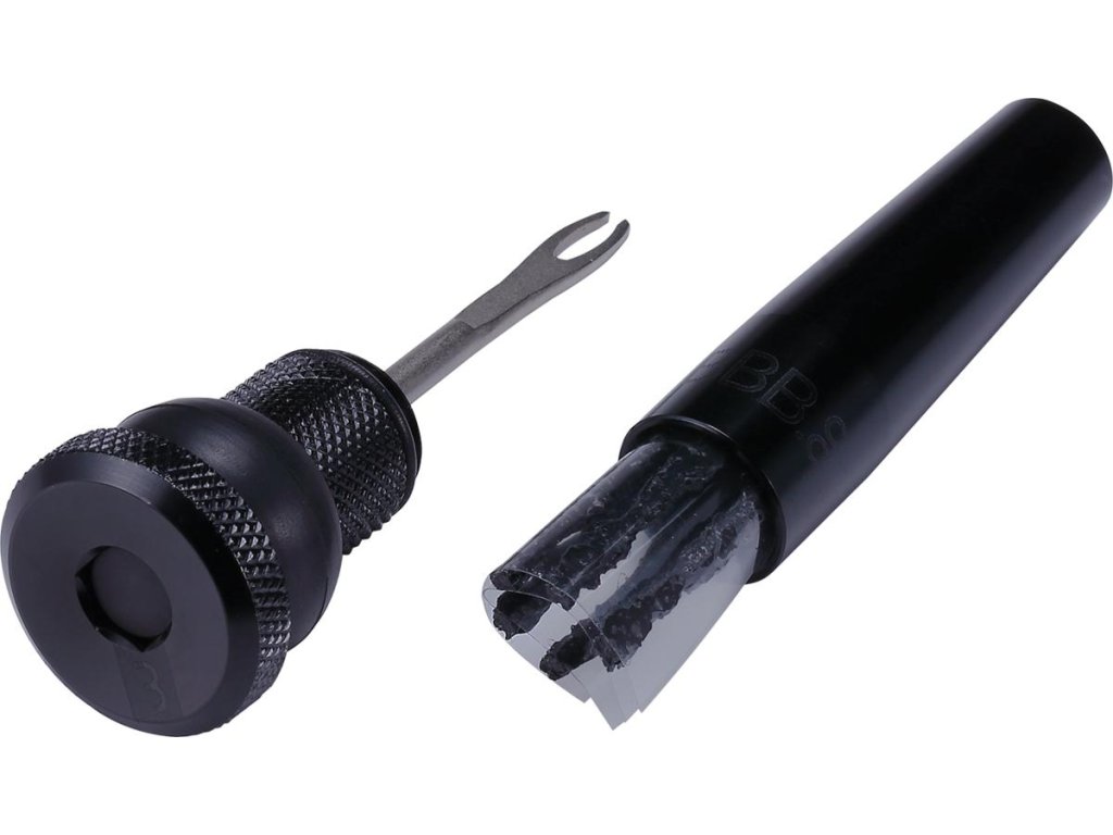 Sada na opravu bezdušových pneu, vrátane náradia a opravných knôtov v hliníkovom obale