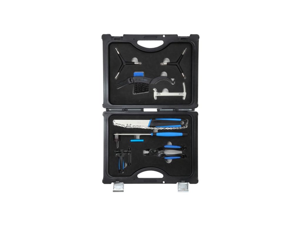 Servisný kufrík obsahujúci všetko potrebné pre servis prevodového ústrojenstva bicykla.Dodávané v luxusnom kufríku s penovou výplňou, aby ostalo náradie na svojom mieste i počas prepravy.Obsah kufríka: BTL-11S náradie na pridržanie kazety, BTL-211 redukciu pre 12mm osku, BTL-12S náradie na kazetu, BTL-17 čistiacu kefku na prevody, BTL-77 kliešte na rýchlospojku reťaze, BTL-125 mierku na reťaz, BTL-05 nitovač reťaze, BTL-28 3-imbusový kľúč (2,2.5,3mm), BTL-28C 3-multi náradie (T25, imbus 4/5).