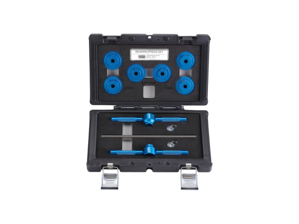 Sada náradia z hliníka na montáž ložísk do stredového zloženia.Kompatibilné s 22/24/29/30mm priemerom osiek.CNC obojstranne opracované lisovacie misky pre stredové misky i samostatné ložiská.Kompatibilná s všetkými servisovateľnými BBB stredovými zloženiami (aj iných značiek).Komfortné a luxusné lisovacie rukoväte s off-setom pre jednoduché použitie.240mm dlhá závitová tyč pre kompatibilitu s akýmkoľvek stredovým zložením.Dodávané v luxusnom kufríku s penovou výstelkou, aby náradie ostalo na svojom mieste i počas prepravy.