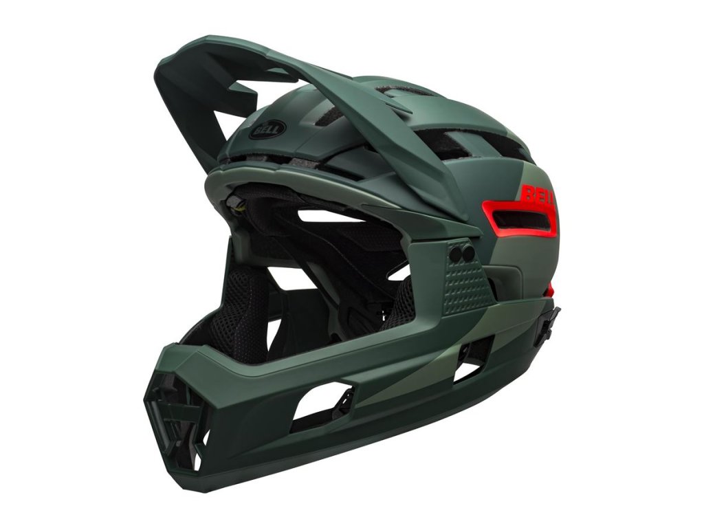 Napriek tomu, že značka Bell je nepopierateľným lídrom v oblasti prilieb s odnímateľným chráničom brady, neustále sa snažíme prekonávať sami seba. Model Super Air R nie je len obyčajným faceliftom prilby Super 3R. Je to úplne nová prilba, ktorá váži o neuveriteľných 144 gramov menej. K tomu si pridajte výrazne lepšie odvetranie, jednoduchšie upínanie pomocou dvoch prackov (namiesto troch) a inovatívnu technológiu Spherical Powered by MIPS, ktorá funguje ako akési odpruženie vo vnútri prilby. Prilba sa v skutočnosti skladá z dvoch polokoulí: vonkajšia z tvrdšej EPS peny a vnútorná z mäkšej EPP peny. Obe sú navzájom spojené pomocou žltých elastomerov a kĺžu po sebe podobne ako kĺb. V prípade nárazu sa vonkajšia polokoule okamžite zastaví, zatiaľ čo vnútorná polokoule aj s hlavou môže pokračovať v pohybe, ktorý pomaly tlmí elastomery. Prosto odpruženie. MIPS (Multi-Directional Impact Protection System) poskytuje zvýšenú ochranu proti pôsobeniu rotačných síl na hlavu. Viac na www.MIP Sprilby.sk UPÍNACÍ SYSTÉM Float Fit KONŠTRUKCIA In-mold Polycarbonate Shell, Progressive Layering, odnímateľný chránič brady, Spherical Powered by MIPS VETRANIE 26 otvorov, Overbrow Ventilation odvetranie čela VLASTNOSTI ľahké polstrovanie X-Static®, Sweat Guide, nastaviteľný štítok, certifikácia CE EN 1078, kompatibilita s motokrosovými okuliarmi, úchyt na GoPro VEĽKOSTI S (52–56 cm), M (55–59 cm), L (58–62 cm)