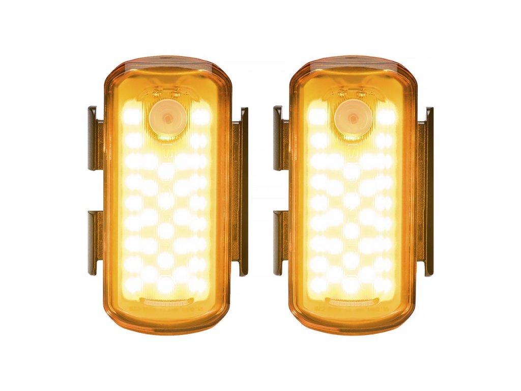 Sada dvoch bočných svetiel určených na montáž na obe strany vidlice. Najmä v mestskom prevádzkovaní je dôležité byť vidieť zo všetkých strán. Podľa americkej štúdie National Highway Traffic Safety Administration je 27% všetkých zrážok áut s cyklistami práve z boku. Technológia COB (Chip on Board) je to najmodernejšie a najefektívnejšie riešenie. Svetlo sa upevňuje jednoducho pomocou silikónového pásku alebo pomocou klipu. Dobíjanie prebieha pomocou USB-C kábla. Ochrana proti vode IP-65. MÓDY High 1,5h (110 lumenov) • Pulse 4h (55 lumenov) +2h Auto-Eco dojazdový mód • Fast Strobe 6h (40 lumenov) +2h Auto-Eco dojazdový mód • ECO Flash 20h (40 lumenov)