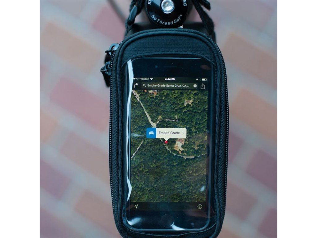 Praktická brašna na horní rámovou trubku, která disponuje i kapsou pro mobilní telefon, který je vám tak neustále k dispozici – dotykový displej je funkční. Kompatibilní s iPhonem 6 a menšími telefony.