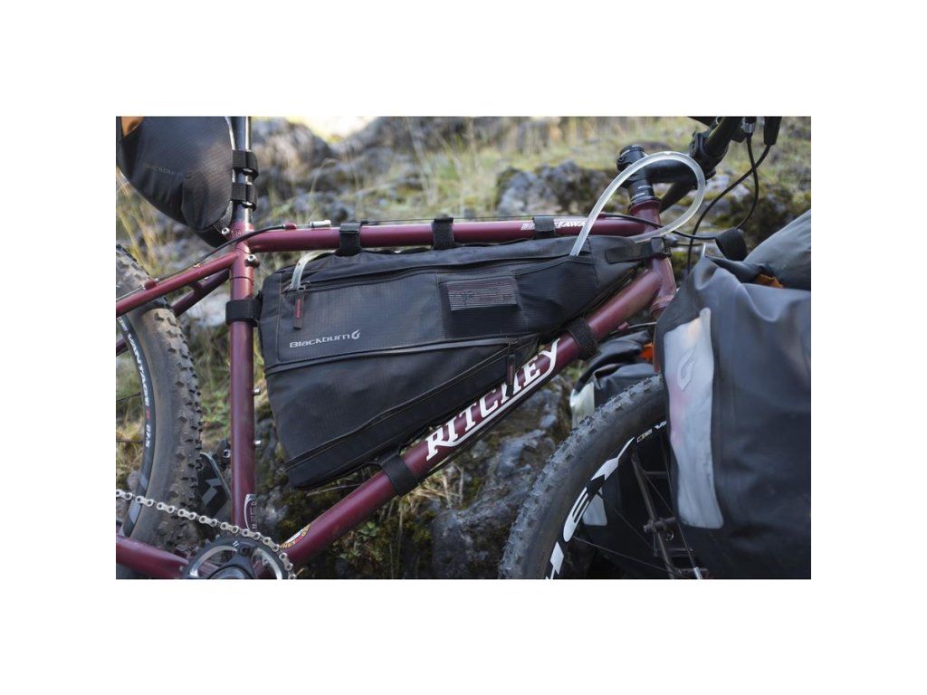 Rámová brašna se zvětšitelným objemem pro různé velikosti rámů: Small, Medium a Large. Jednotlivé přihrádky jsou perfektně promyšlené, nechybí ani otvor na protažení hadičky vodního rezervoáru. Brašna je voděodolná a díky adaptabilnímu upínacímu systému je přiděláte na každé kolo.