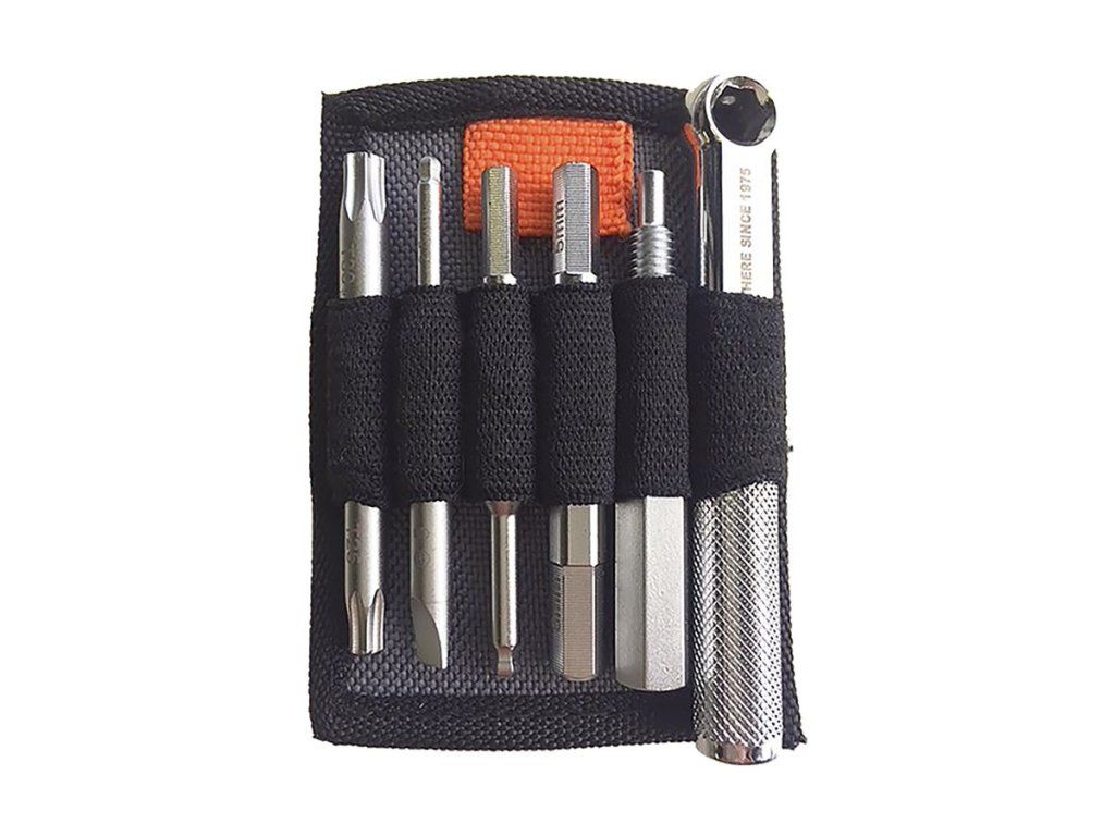 Unikátní sada 15 nářadí včetně praktického pouzdra pod sedlo – vše máte okamžitě po ruce.