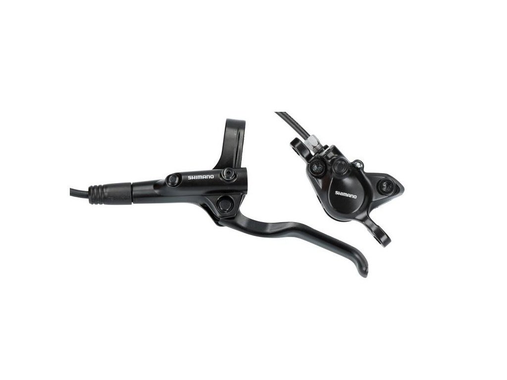 Kotúčová brzda MT200. Zložená z brzdovej páky BLMT200 a strmeňa BRMT200 bez adaptéra, spojená hadicou BH59-SS. Platničky-resin B05S.