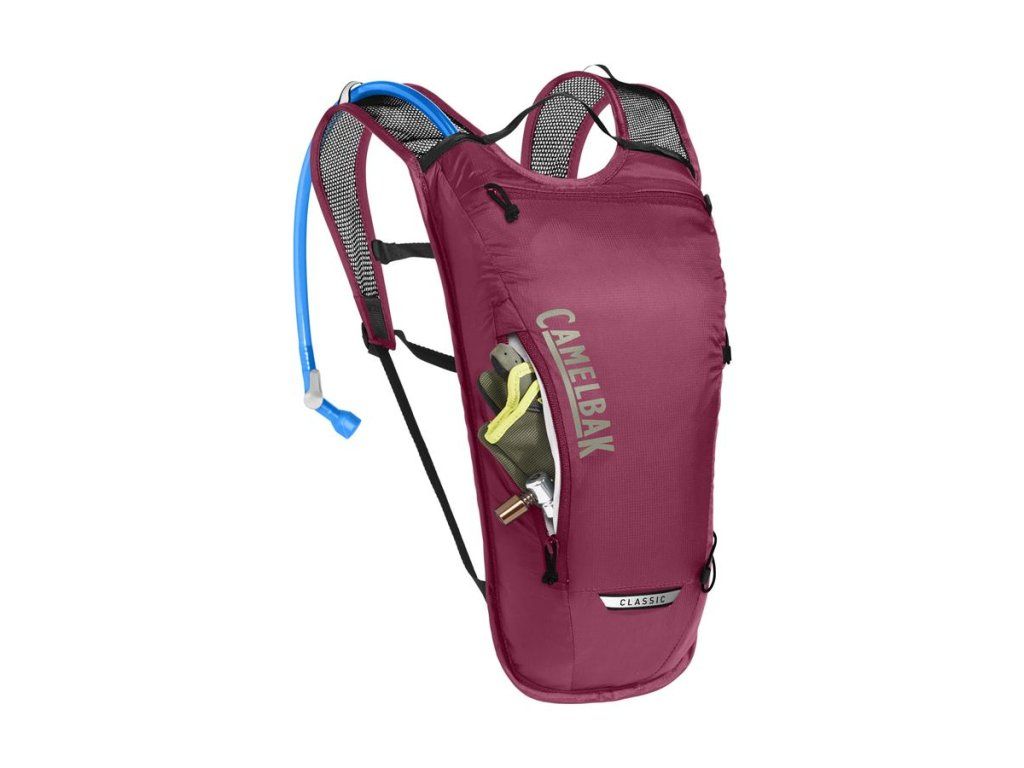 VLASTNOSTI lehké a prodyšné materiály, odvětrané popruhy, bezpečnostní kapsa, nastavitelný hrudní popruh, poutko na blikačku, úchyt na hadičku Tube Trap