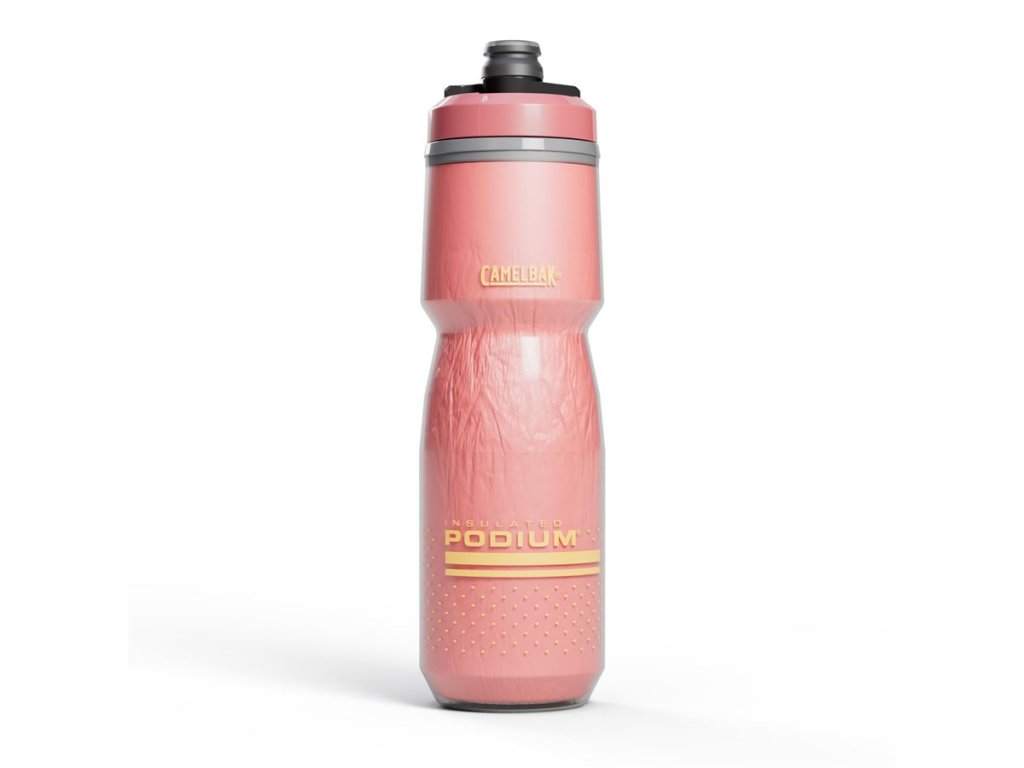 Izolované fľaše CamelBak Podium Chill udrží vďaka dvojitej stene teplotu nápoja 2x dlhšie v porovnaní s normálnou fľašou. Sú vyrobené z polypropylénu bez BPA, BPS a BPF, ktorý zabezpečuje vernú chuť nápoja bez plastového pachu. Vďaka patentovanému samouzáveru Jet Valve z medicínskeho silikónu voda z fľaše nekape na rám. Navyše je vybavená úplným otočným uzáverom (lock-outom) na prepravu plných fliaš v taške alebo v aute. Viečko s náustkom sa ľahko úplne rozoberie a vyčistí. Vďaka dokonalému tvaru sa fľaša Podium na bicykli dobre drží, ľahko sa mačka a nikdy ju nestratíte z košíka. Podium je prémiová cyklistická fľaša, ktorá dlhodobo nastavuje latku kvality. OBJEM 0,71 l