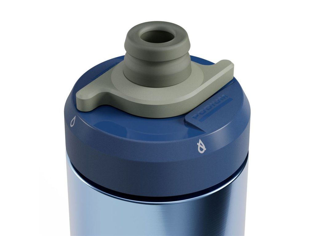 Jasně modrá trubice pod uzávěrem Podium® je Vent Tube. To je tajemství vysokého průtoku vody, když lahev převrátíte dnem vzhůru, abyste pili. Odvzdušňovací trubice umožňuje vstup vzduchu, který nahrazuje vodu, která vytéká plynule ven z lahve.