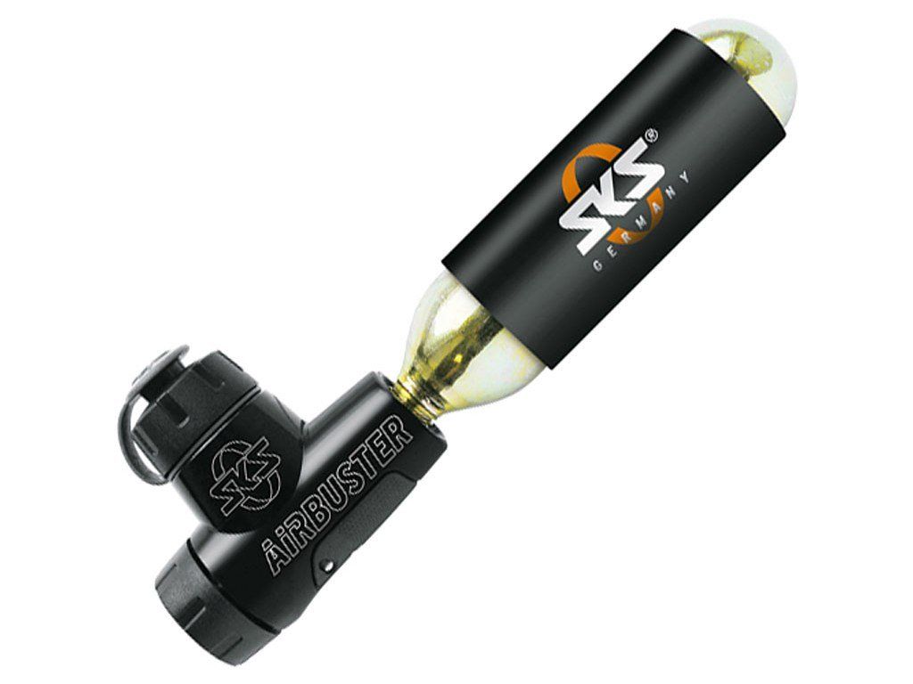SKS Airbuster je ultimátne CO2 riešenie. Kovová základňa s regulátorom tlaku zabezpečuje maximálnu efektivitu hustenia. Krytka zabraňuje vniknutiu prachu do ústia pumpičky. Kompatibilný so 16 g aj 24 g náhradnými bombičkami.