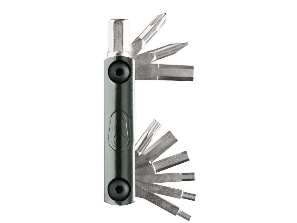 NÁŘADÍ vysokopevnostní ocel • inbusy 2 / 2,5 / 3 / 4 / 5 / 6 / 8 mm • šroubováky křížový a plochý • Torx klíč T25 • otvírák na lahev