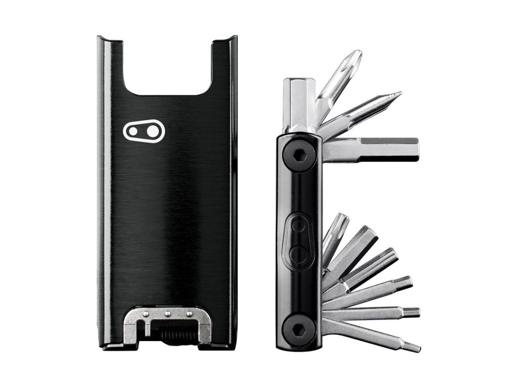 Kompaktné 15-funkčné náradie uložené v luxusnej magnetickej krabičke, ktorá zároveň môže poslúžiť ako držadlo, keď sa do niečoho potrebujete oprieť s väčšou pákou. Hmotnosť: 164g NÁRADIE vysokopevnostná oceľ • nýtovač 8 / 9 / 10 / 11 / 12 rýchlostné reťazy • centrovacie kľúče #0, #1, #2 a #3 • imbusy 2 / 2,5 / 3 / 4 / 5 / 6 / 8 mm • skrutkovače krížový a plochý • Torx kľúč T25 • otvárač na fľašu.