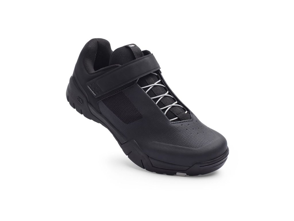 Kompletne vyladená enduro bota pre nášlapné pedály. Podrážka MC1 bola vyvinutá pre použitie s nášlapnými pedálmi: má veľký box okolo kufrov pre jednoduché nacvaknutie a vycvaknutie aj v blate, pod kuframi je vložená tvrdá vložka pre skvelý prenos sily na pedal a podrážka na špičke a päte je poddajnejšia a spolu so smerovým vzorom na podrážke ťa podrží počas chôdze do kopca aj z kopca. O tlmenie nárazov sa stará polstrovaná EVA vložka. Jednoduché a rýchle šnurovanie, odvetraný mesh materiál, polstrovaný jazyk s kapsou na šnúrky, aby sa nezamotali do reťaze, guma na päte aj špičke pre ochranu obuvi aj nohy, grip proti vyzúvaniu päty a detaily v dizajne Crankbrothers. Dokonale premyslená obuv pre jazdu na bicykli aj chôdzu vedľa bicykla, keď to na bicykli už nezvládaš. Teraz sa už na nič nevyhovoríš. Choď jazdiť. MATERIÁL odolnésyntetické vlákno, odvetrané panely, zosilnené pogumované zóny PODRÁŽKA MC1 Compound, karbonový plát pre skvelý prenos sily, Ready to ride: nainštalované Crankbrothers kufre UPÍNACÍ SYSTÉM Speedlace šnúrky, polstrovaný jazyk s kapsou na šnúrky, pásik na suchý zips VLOŽKA EVA HMOTNOSŤ 460 g (veľkosť 42)