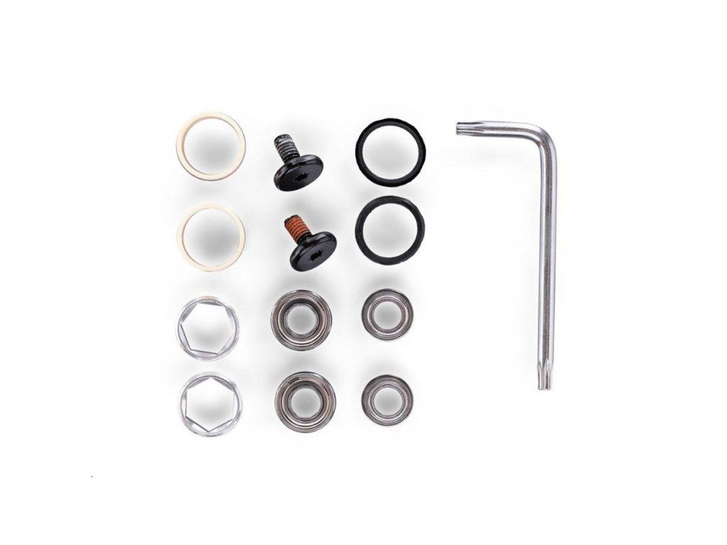Sada obsahuje ložiska Enduro, kluzná pouzdra Igus, vnitřní a vnější těsnění, záslepky pedálů, o-kroužky a nástroj na vyndávání ložisek.