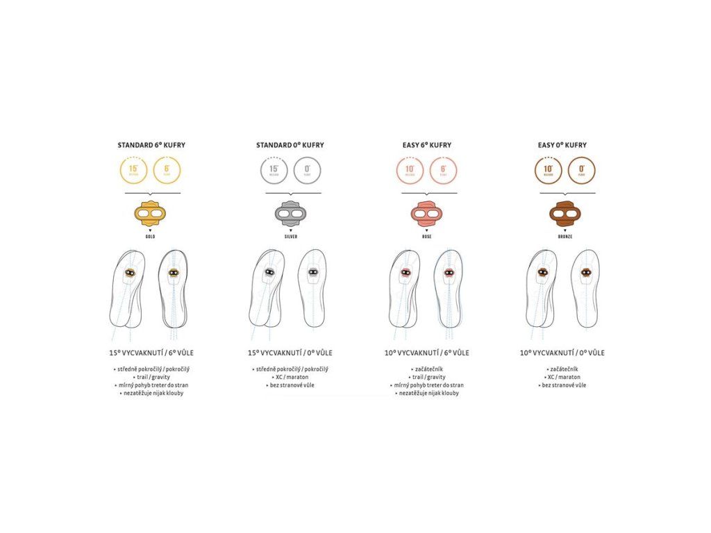 Ultra odolné mosazné kufry pro všechny pedály crankbrothers. 0° Float Cleat jsou bez stranové vůle.