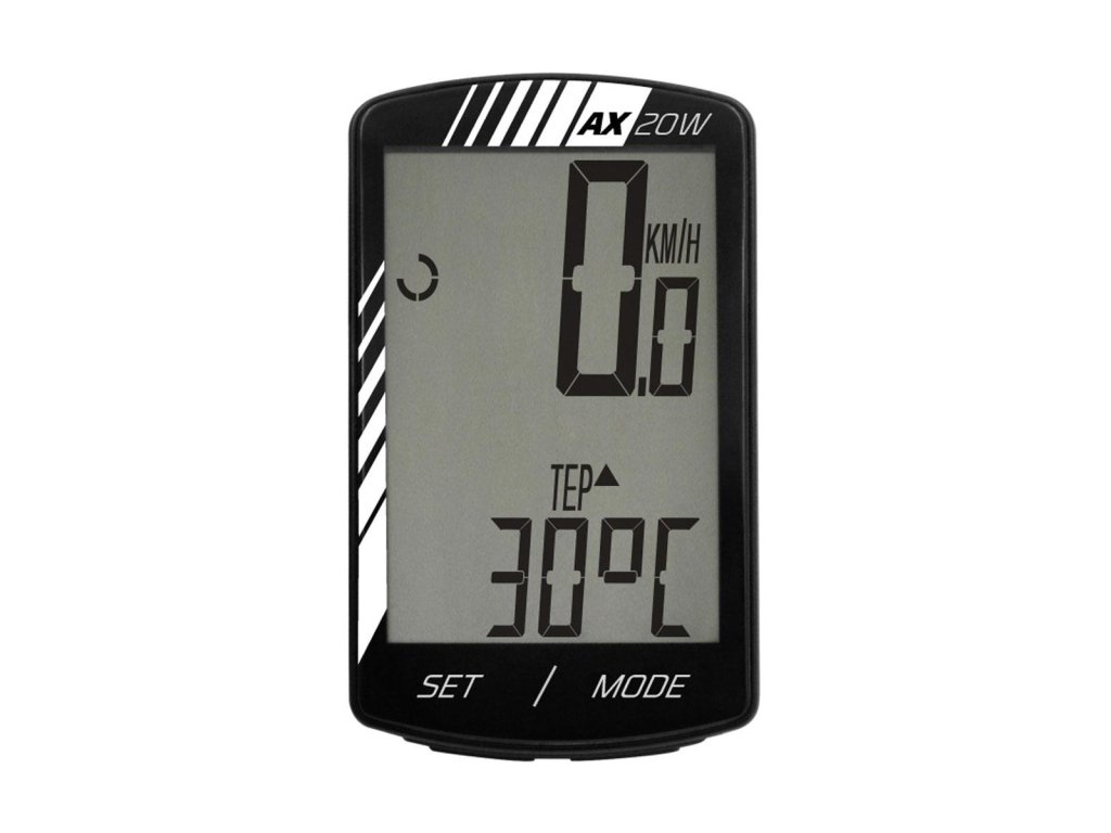 Bezdrôtový počítač AX-20W ponúka 20 funkcií, ktoré uspokoja informáciami z priebehu jeho jazdy aj náročného cyklistu. Jednoduché intuitívne ovládanie a nastavovanie dvomi tlačidlami uľahčí každodenné používanie.