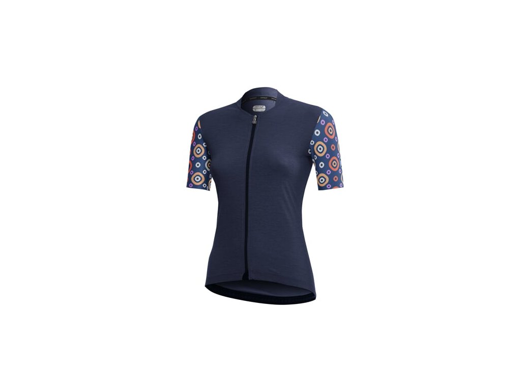 Jedná sa o elastický technický dres s voľným, pohodlným strihom a vynikajúcou priedušnosťou, ktorý sa skvele hodí na všetky výkonnostné a závodné jazdy aj na udržiavanie kondície, a je tiež ideálny do teplého počasia a horúceho podnebia. Pohodlný ergonomický výstrih zabezpečuje maximálnu voľnosť pohybu. Grafika v kombinácii s trendy farbami vytvára mimoriadne ženský, dynamický vzhľad. Predtvarovaná anatomická konštrukcia | Pásový úchyt s aplikovanou protišmykovou vnútornou gumou zo superľahkého mikrovlákna pre dokonalú priľnavosť k kraťasom a ergonomický strih | 3 zadné vrecká, vrátane reflexného vodeodolného vrecka Dot Safe na ochranu elektronických zariadení | Otvorený predný zips so samosvorným jazyčkom Dotout a laserovou garážou na zips.
