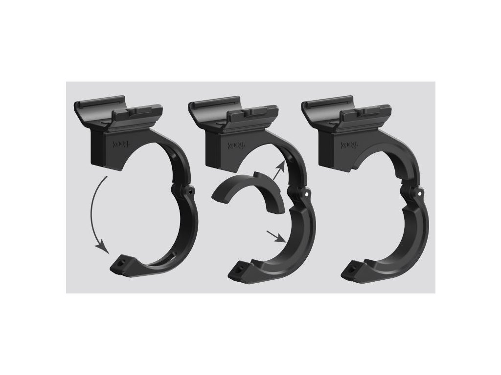 Tento držák umožňuje pevné upnutí výkonného předního světla Knog Blinder PRO. Použitelný jak na řídítka o průměru 35 mm, tak díky vložkám také na průměr 31,8 mm.