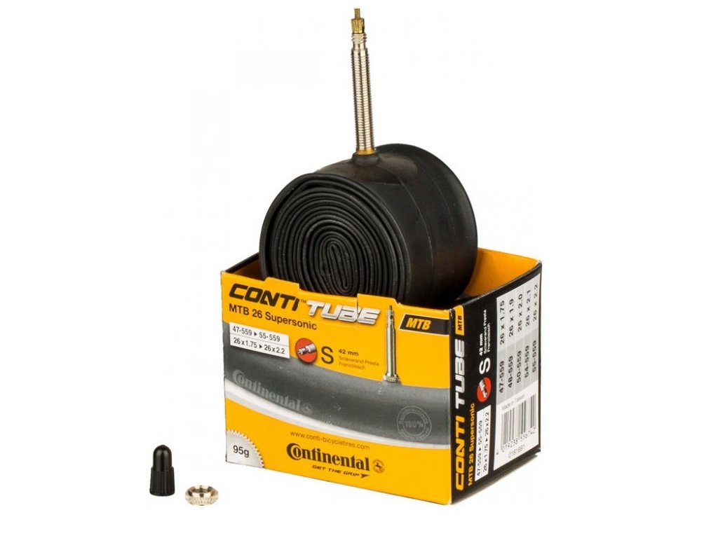 Superľahká duša Continental Supersonic pre 26 palcové horské bicykle.Rozmer: 26x1,75-2,2 ""Ventilček: galuskový (FV), dĺžka 42mm
