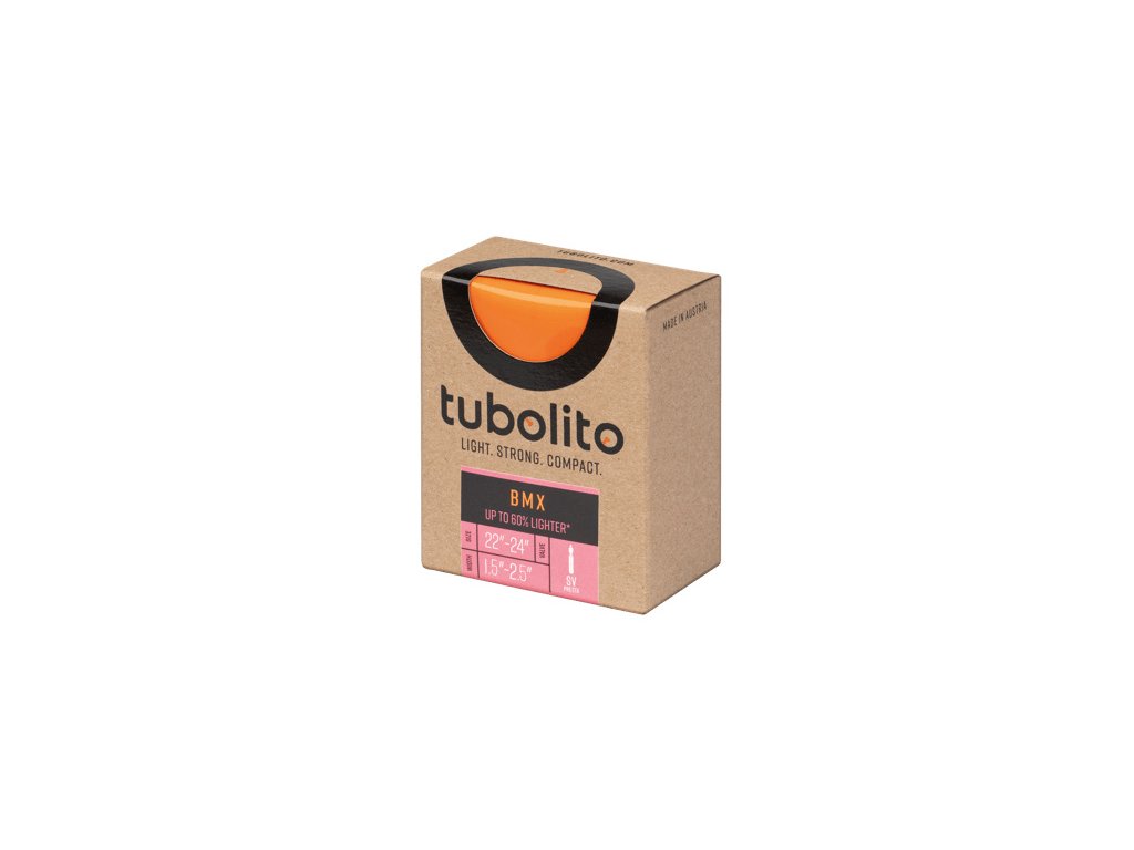 Super ľahká duša Tubolito dovoľuje BMX jazdcom skákať vyššie. Vďaka rozdielu v hmotnosti v porovnaní s klasickou dušou, ktorá je ešte viditeľnejšia u rotujúceho výpletu, sa koleso stane obratnejším a ľahším. Hmotnosť len 69 gramov! Verzia pre 20/22" alebo verzia 24" Pre plášte s hrúbkou: 1.5-2.5" Verzia s autoventilčekom (+ 9g) alebo galuskovým ventilčekom 50 % menšia a 2x odolnejšia proti prepichnutiu Nižší valivý odporInštaláciu do ráfika vykonávajte s Tubolito nafúknutou na 0,2-0,5 baru. Nafúknutie na túto hodnotu vykonajte mimo ráfik a dbajte na to, aby ventilček smeroval dovnútra, aby nedochádzalo k zbytočnému namáhaniu materiálu.