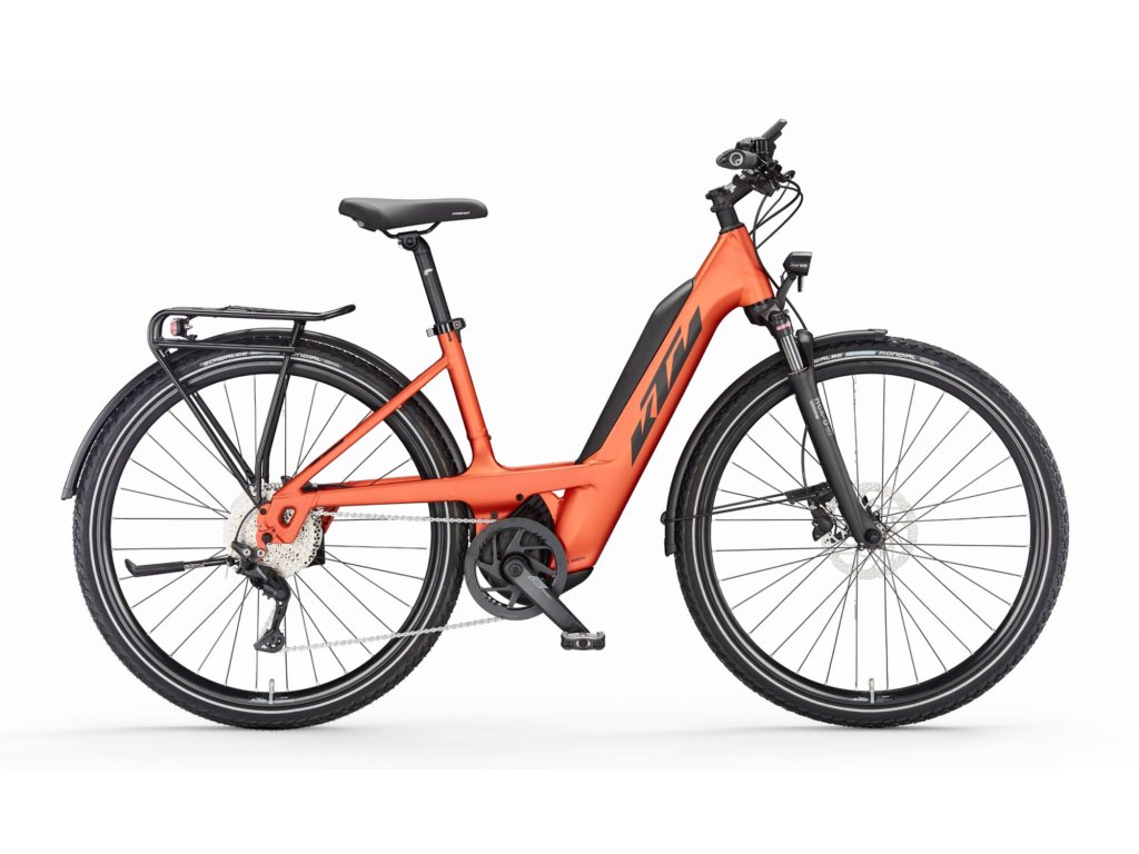 KTM MACINA Sport 510 2023 je veľmi komfortný trekingový elektrobicykel, určený najmä pre asfaltové cesty, ale zvládne aj poľné cesty či ľahký terén. Vďaka pohodlnému posedu, integrovanému osvetleniu a batérii s veľkou kapacitou je doslova predurčený pre mestské dochádzanie bez častého nabíjania aj dlhej jazdy po okolí. Elektrobicykel má motor Bosch PERFORMANCE CX Gen.4 a plne integrovanú batériu s kapacitou 500Wh. Informácie o jazde sa vám zobrazujú na displeji Bosch Intuvia. O pruženie sa stará vidlica Suntour so zdvihom 63mm.