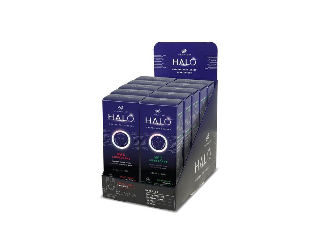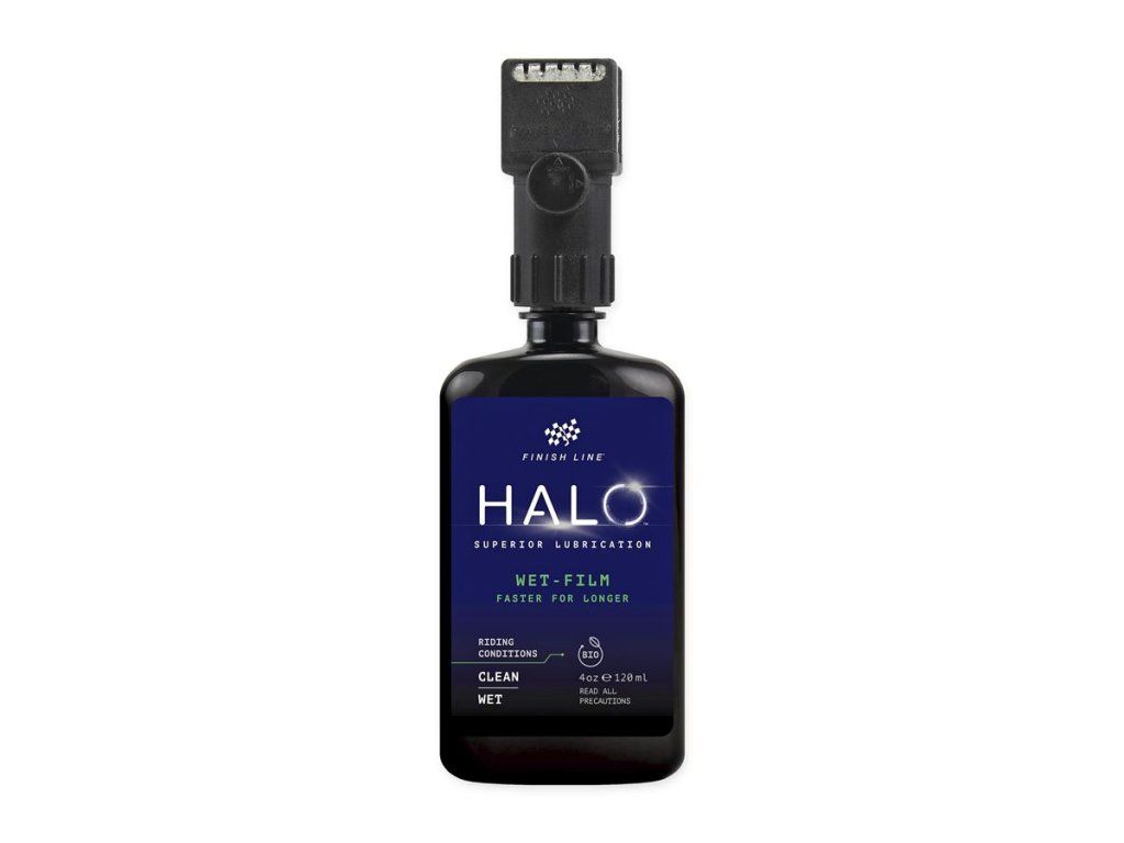 HALO Wet-Film je navržen pro bezkonkurenční výkon celého hnacího ústrojí, dlouhou životnost a voděodolnost namazaného řetězu i ve velmi náročných mokrých podmínkách. HALO Wet-Film tvoří pokročilé technologie: wolframové částice a nepřilnavý keramický potah. Výsledkem je nejrychlejší, nejčistší a nejtrvanlivější mazivo ve své kategorii. Vyzkoušejte nejrychlejší mazání i na zablácené trati!