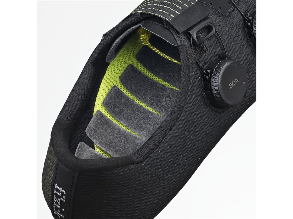Vento Stabilita Carbon sú pretekárske tretry, ktoré sa zameriavajú na dokonalú stabilitu nohy a perfektný prenos výkonu do pedálov. Stabilita nohy je zabezpečená pomocou jedinečného systému podpory klenby, nášho Dynamic Arch Support 2.0. Tretra sa vďaka tomuto systému dokonale prispôsobí nohe konkrétneho jazdca a ten sa tak môže sústrediť iba na jazdu. Čarovnosť spočíva v jedinečnom dizajne podrážky, ktorá je užšia a samotnú klenbu nohy stabilizuje systém pásikov stiahnutých novými nižšími a ľahšími BOA kolieskami. Samozrejmosťou je nezávislé stiahnutie hornej a spodnej časti tretier Volume Control, ktoré dokonale obopne vašu nohu bez nepríjemných otlakov. Všetko zabalené do výnimočného dizajnu Fizik, ktorý vám zabezpečí obdiv na každej vyjížďke. materiál odolné syntetické vlákno s odvetrávanými lamelami podrážka Full UD Carbon odvetrávaná, index tuhosti 10 upínací systém Double Infinito Boa Li2 vložka Vento váha 227 g (42,5) veľkosti 42–46.