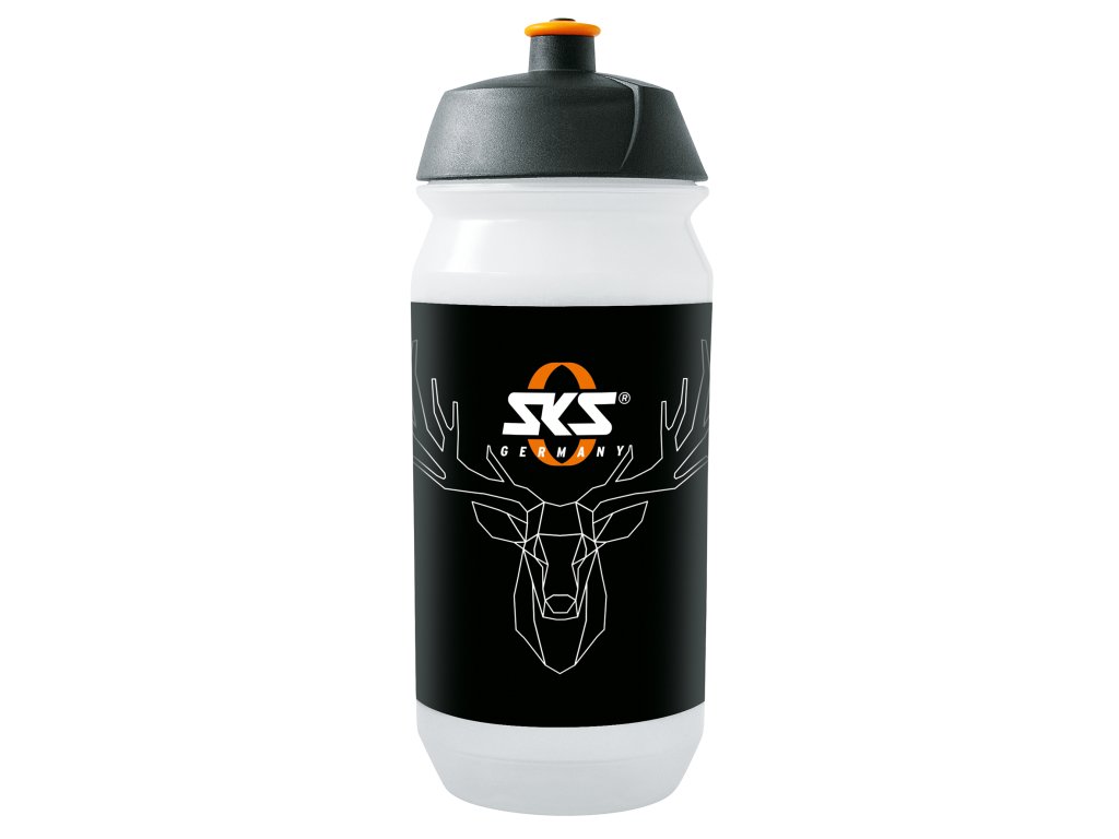 Cyklistická fľaša s obrázkom jelenieho parožia od nemeckého výrobcu SKS.Skrutkovací uzáver.Objem: 500 ml