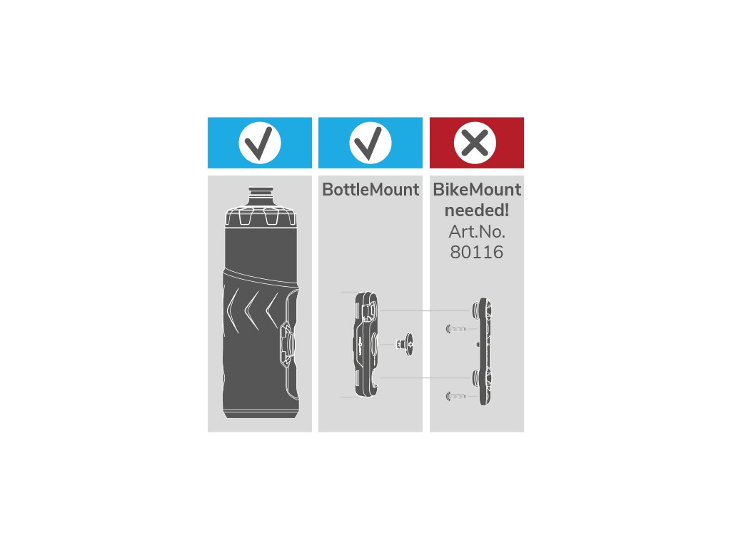 Pro cyklisty byla MonkeyBottle vyvinuta tak, aby usnadnila připevnění a sejmutí z kola. Rukojeť je také možné připevnit na jakoukoli tyč kola, bez ohledu na to, jak velký je rám. Úzká místa, která v minulosti zabírala příliš mnoho místa, jsou zcela odstraněna. Cyklistům je celosvětově nabízena unikátní technologie uzavírání lahví. Magnety zajišťují stabilní aretaci a snadné zavírání. Materiál: plast (bez BPA)Objem: 600 ml