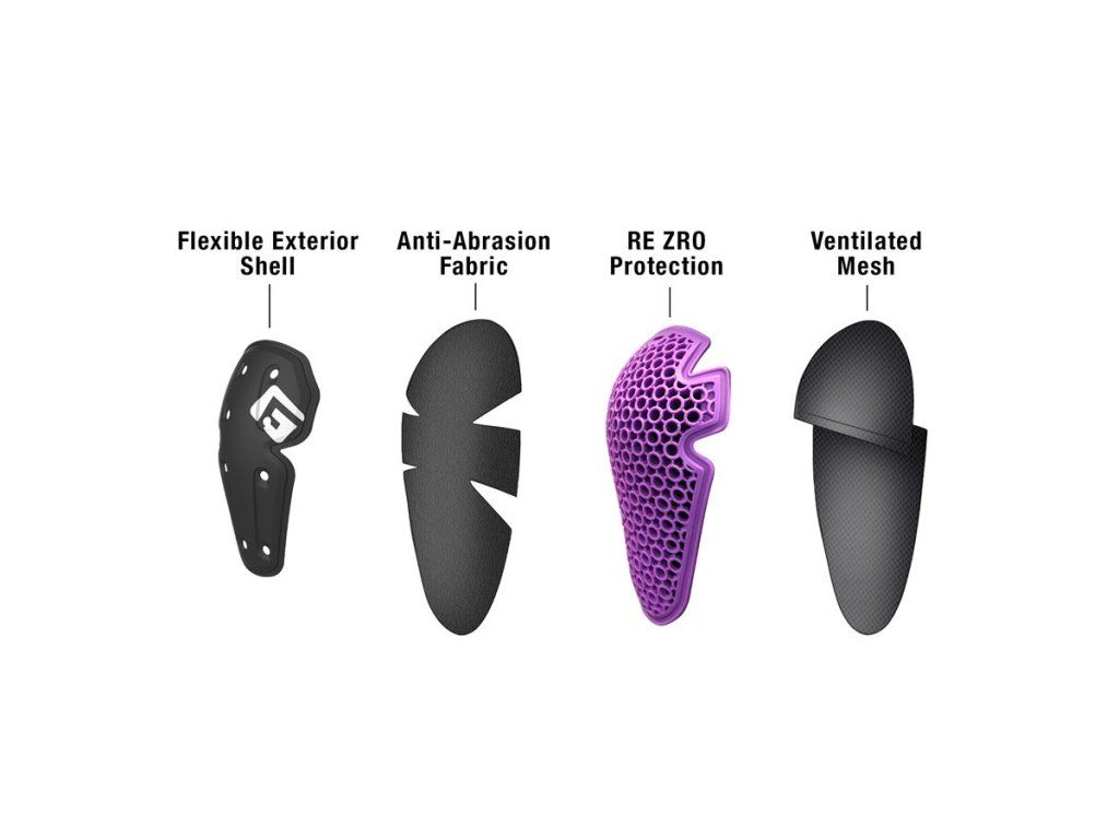Chraňte sebe i planetu. První biologicky rozložitelnou kolekci chráničů na světě uvádí na trh progresivní značka G-Form díky vlastní vložce RE ZRO. Průměrná plastová láhev se rozkládá 450 až 500 let – náš chránič se rozloží za 3 až 5 let! Celý proces rozkládání ale začne až na skládce, kde jsou ideální podmínky bohaté na mikroby a málo kyslíku. Za jízdy ti poskytne vysokou míru komfortu, velmi nízkou hmotnost, bezkonkurenční odvětrání a díky velké flexibilitě chrániče i bezproblémové šlapání. Rozložitelná ergonomicky tvarovaná vložka RE ZRO se ukrývá v odvětrané, z vnitřní strany polstrované, kapse, ze které lze chránič vyndat, opláchnout a návlek samostatně vyprat jako naše ostatní chrániče. Tento chránič je navržen pro náročné ježdění v těžkých podmínkách. Chránič kryje tvrdá skořepina, která lépe snáší přímý kontakt s terénem při pádu, aniž by se samotná vložka RE ZRO mohla poškodit. Pod ní je umístěna další ochranná vrstva – tkanina Armortex odolná proti roztržení a oděru. Nejdůležitější vrstvu tvoří RE ZRO vložka, která nárazem ztuhne a lépe rozloží tlak na větší plochu a ochrání tak jezdce před poraněním. Poslední, vnitřní, vrstvou je měkká pěnová výstelka pro pohodlné nošení a jistější usazení chrániče. Větrání je zajištěno síťovinou použitou na zadní straně návleku a větracími kanály AirFlow skrz celý chránič.