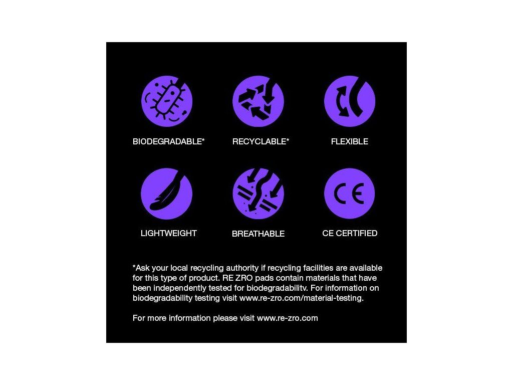 Chraňte sebe i planetu. První biologicky rozložitelnou kolekci chráničů uvádí na trh progresivní značka G-Form díky vlastní vložce RE ZRO. Průměrná plastová láhev se rozkládá 450 až 500 let – náš chránič se rozloží za 3 až 5 let! Celý proces rozkládání ale začne až na skládce, kde jsou ideální podmínky bohaté na mikroby a málo kyslíku. Za jízdy ti poskytne vysokou míru komfortu, velmi nízkou hmotnost, bezkonkurenční odvětrání a díky velké flexibilitě chrániče i bezproblémové šlapání. Biologicky rozložitelná ergonomicky tvarovaná vložka RE ZRO se ukrývá v odvětrané, z vnitřní strany polstrované, kapse, ze které lze chránič vyndat, opláchnout a samostatně ho vyprat jako naše ostatní chrániče. Síťovaná zadní část návleku skvěle větrá a eliminuje řasení materiálu. Na přední straně je naopak mechanicky odolná vrstva pro delší životnost chrániče. Horní rozšířený lem návleku je vybaven silikonovými proužky, aby držel na svém místě po celou jízdu z kopce dolů.