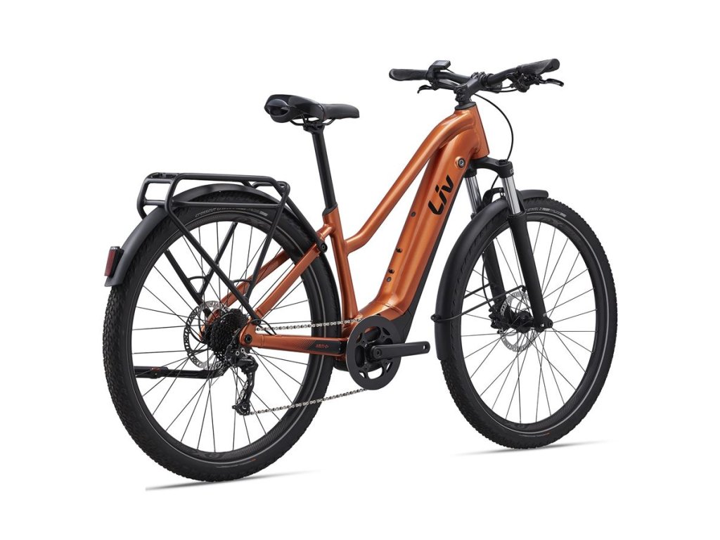 ELEKTROKOLO AMITI E+ BUDE VÁŠM SKVELÝM SPOLOČNÍKOM NA VÝLETÁCH KRAJINOU AJ PRI JAZDE V MESTE. MODEL NEJ TÝCHTO RÁD Má ZNÍŽENÚ HORNÚ RÁMOVÚ TRUBKU PRE POHODLNÉ NASTUPOVANIE A SEDENIE Z BICYKLA A SÚ VYBAVENÉ NOSIČOM, BLATNÍKMI, OSVETLENÍM A STOJÁNKOM. VYŠŠIE MODELY AMITI E+ 1 A 2 MAJÚ NOVÝ RÁM S EŠTE MODERNEJŠÍM DIZAJNOM, INTEGROVANOU BATÉRIOU 625 WH A TIEŽ STREDOVÝM MOTOROM NOVÉ GENERÁCIE. Hlavné prednosti Stredový motor SyncDrive Yamaha Modely Amiti E+ 1 a 2 majú nový motor SyncDrive Sport 2 Yamaha, ktorý je v porovnaní s prvou generáciou tohto motora menší a ľahší, točivý moment bol zvýšený na 75 Nm a maximálna podpora zvýšená na 400 %. Amiti E+ 3 využíva prvú generáciu motora SyncDrive Sport (70 Nm, podpora 350 %) a cenovo najdostupnejší model Amiti E+ 4 je osadený motorom SyncDrive Core Yamaha (50 Nm, 300 %). Batéria EnergyPak Modely Amiti E+ 1 a 2 majú integrovanú batériu EnergyPak Smart 625 Wh, ktorá je uložená vo spodnej rámovej trubke. Pre zvýšenie dojazdu je ako voliteľné príslušenstvo ponúkaná prídavná batéria EnergyPak Plus 250 Wh (nie je možné použiť pre veľkosť XS). Modely Amiti E+ 3 a 4 majú batériu EnergyPak 500 Wh, ktorá je elegantne začlenená do spodnej rámovej trubky a vyberá sa do strany. Ovládacia jednotka s displejom Pre veľmi komfortné ovládanie elektrokola je tu jednotka RideControl Dash, ktorej súčasťou je aj prehľadný farebný displej, ktorý zobrazuje najdôležitejšie údaje o jazde a tiež stav batérie. Je tu aj USB-C konektor, ktorý sa bude hodiť na nabíjanie telefónu. Cenovo najdostupnejší model Amiti E+ 4 je osadený ovládačom RideControl One ANT+ s možnosťou doplniť kompatibilný displej RideDash Plus 2. HYBRIDNÁ TECHNOLÓGIA MOTOR SyncDrive Sport 2, 75Nm, powered by Yamaha OVLÁDACIA JEDNOTKA RideControl Dash DISPLEJ RideControl Dash, full color lcd screen BATÉRIA EnergyPak Smart 625, EnergyPak Plus 250 range extender compatible (exclude XS size) RÁM VEĽKOSŤ L FARBA Copper Coin RÁM ALUXX hliník, Overdrive 1.8' - 1.5' head tube, integrated battery, integrated KSA40 kickstand mount VIDLICA SR Suntour XCM34, 100mm travel, Hydraulic Lockout, 15x110mm AH Axle KOMPONENTY RÚČKY Giant Connect Riser 31.8x620mm (XS/S), 690mm(M/L) GRIPY Liv Contact Ergo Max Plus PREDSTAVEC Giant Contact (XS/S/M: 80mm, L:100mm) SEDLOVKA Giant 30.9mm, 2-bolt Micro Adjustable, Forged Aluminium SEDLO Liv Sport Comfort PEDÁLY Aluminum Platform OSAZENIE ŘAZENÍ Shimano Altus PŘEHAZOVAČKA Shimano Alivio, 9-speed BRZDY Tektro HD-M276, hydraulic disc,180mm BRZDOVÉ PÁKY Tektro HD-M276 KAZETA Shimano CS-HG200, 11-36T, 9-speed ŘETĚZ KMC e.9 Sport, e-bike optimized KLIKY Forged Alloy Direct spider/chainguard 46T Steel narrow/wide chainring KOLA RÁFKY eX25, Tubeless Ready, 622x25 Aluminium NÁBOJE Giant eTracker, [F] 110x15 [R] 1142x12 DRÁTY Stainless steel PLÁŠTĚ Crosscut Gravel 2, 700x57, Wire Bead, Tubeless Ready PŘÍSLUŠENSTVÍ SVETLO Recon E HL50 StVZO [F]AXA NYX 6-12V E-bike tail light [R] ZÁMEK ABUS Xplus battery lock NOSIČ MIK rack. System bag and basket compatible Meet Edurne Pasaban | Featuring the All-New Amiti E+