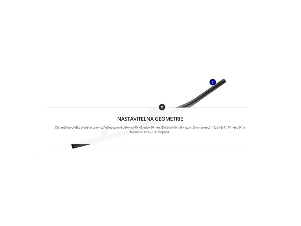 Integrované riadidlá/predstavec Contact SLR Trail prinášajú nastaviteľnosť, poddajnosť, nízku hmotnosť a čistý jednoduchý profil. Ponúkajú všetky výhody jednodielneho riešenia riadidiel a predstavca, ale s nastaviteľnosťou konvenčného dvojdielneho riešenia. Odolná patentovaná karbonová konštrukcia a štíhlejší profil v blízkosti stredu pomáhajú absorbovať vibrácie pre lepšiu kontrolu a pohodlie rúk v členitom teréne. Integrovaný dizajn hornej krytky uľahčuje montáž cyklopočítača, kamery GoPro alebo svetla. VLASTNOSTI materiál: Advanced Composite Carbon hmotnosť: 255 g špeciálna technológia skladania karbonových vrstiev dodáva poddajnosť a odolnosť spĺňajú testovacie štandardy DH šírka: 800 mm s možnosťou skrátenia až na 760 mm (grafické prvky pre presné skrátenie) distančné podložky predstavca pre nastavenie dĺžky na 40, 45 alebo 50 mm zvýšenie: 20 mm efektívne ohnutie k jazdcovi (back sweep): 7°, 8° alebo 9° pomocou 0° a +/- 3° rozpärek uhol ohnutia nahor (up sweep): 5° utiahnutie na stĺpci vidlice pomocou 2 titanových skrutiek hornú krytku je možné vymeniť za držiak, ktorým môžete na riadidlá upevniť cyklopočítač, GoPro kameru alebo svetlo (držiak je súčasťou balenia) SPECIFIKÁCIA Šírka: 800 mm Zvýšenie: 20 mm