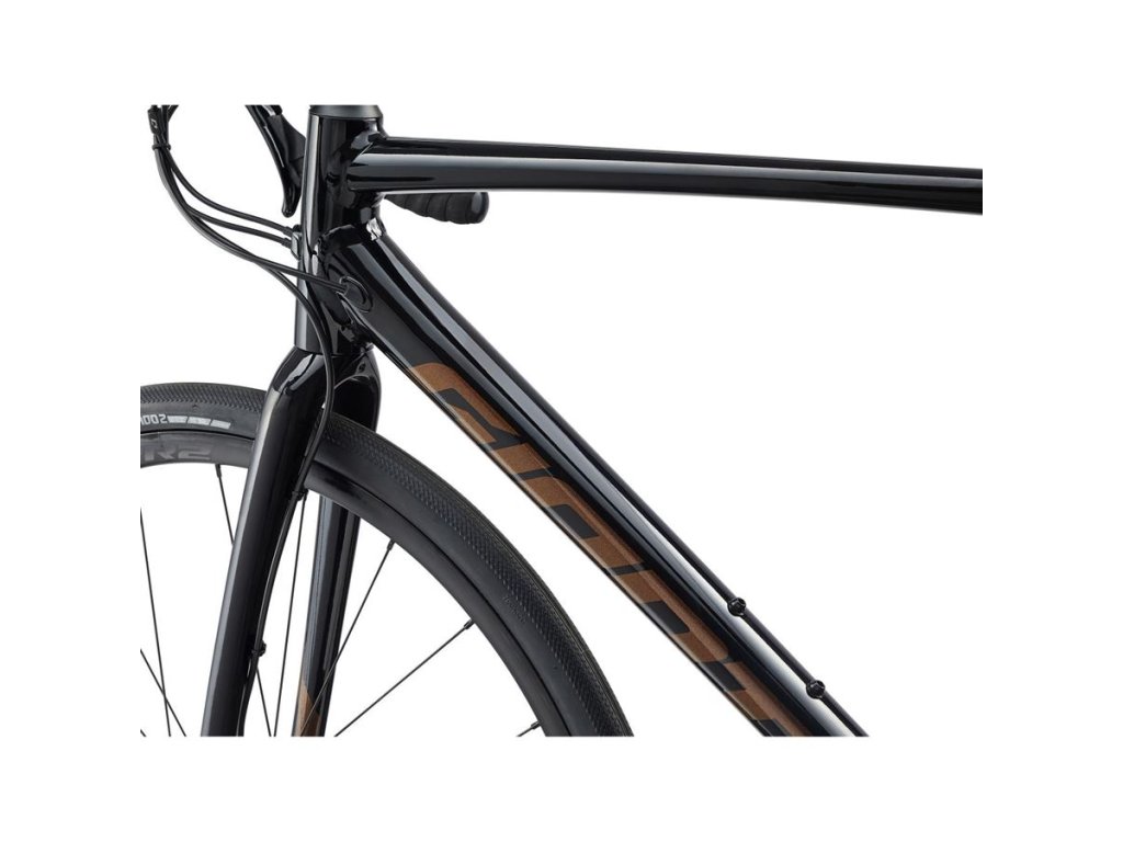 CONTEND AR VÁS POVZBUDÍ K NOVÝM CYKLISTICKÝM ZÁŽITKOM A PRESKÚMANIU DOSIAĽ NEPOZNANÝCH MIEST. IDE O VŠESTRANNÉ A VEĽMI POHODLNÉ CESTNÉ KOLAI S HLINÍKOVÝM RÁMOM, KOTÚČOVÝMI BRZDAMI A ŠIRŠÍMI PLÁŠŤAMI. URČENÉ JE PRE VŠETKÝCH, KTORÍ MAJÚ TÚŽBU PO DOBRODRUŽSTVE A ZÁROVEŇ HĽADAJÚ KOLO, KTORÉ JE CENOVO DOSTUPNÉ. HLAVNÉ PREDNOSTI Hliníkový rám ALUXX a karbónová vidlica Contend AR je postavený na modernom a ľahkom hliníkovom ráme ALUXX s vnútorným vedením bowdenov a integrovanou sedlovou objímkou. Rámy ALUXX, vyrobené z kvalitnej hliníkovej zliatiny v našej vlastnej továrni, prinášajú vysokú tuhosť a pevnosť pri nízkej hmotnosti. Pre lepšie tlmenie vibrácií a tým aj zníženie únavy rúk je kolo vybavené karbónovou vidlicou (karbónový je aj stĺpik vidlice). Vysoký komfort Rám je navrhnutý tak, aby poskytol vysoké pohodlie, a to aj na cestách s horším povrchom. K vyššiemu komfortu pomáha aj karbónová sedlovka D-Fuse (na najnižšom modeli hliníková), ktorá vďaka svojmu špecifickému „D“ tvaru umožňuje mierne „pruženie“ a pomáha tak tlmiť vibrácie. Najvyšší z troch ponúkaných modelov je osadený aj riadidlami typu D-Fuse, ktoré smerom nadol mierne pružia, zatiaľ čo nahor poskytujú vysokú tuhosť. Výborná ovládateľnosť Kotúčové brzdy poskytujú silný brzdný výkon a plynulú moduláciu, čo zlepšuje ovládanie kola, a to aj za premenlivého počasia. Brzdy sú upevnené pomocou moderných plochých úchytov flat mount a 12mm pevné osi zaisťujú potrebnú tuhosť. Stĺpik vidlice OverDrive zvyšuje tuhosť riadenia a tým aj zlepšuje ovládateľnosť kola. Širšie plášte v rozmere 32c (šírka na ráfiku 34 mm) sú bezdušové (okrem Contend AR 3), čo prináša lepšie jazdné vlastnosti a pomáha znížiť riziko defektu. Veľkosť M Farba: Čierna Rám: ALUXX-Grade Aluminum, disc Vidlica: Advanced-Grade Composite, full-composite OverDrive steerer, disc Riadidlá: Giant D-Fuse SL XS:40cm, S:40cm, M:42cm, M/L:42cm, L:44cm, XL:44cm Gripy: Velo cork tape with gel Predstavec: Giant Contact XS:80mm, S:90mm, M:100mm, M/L:110mm, L:110mm, XL:110mm Sedlovka: Giant D-Fuse, composite, 14mm offset Sedlo: Giant Approach Raditeľ: Shimano 105 Prehadzovač: Shimano 105 Prehadzovačka: Shimano 105 GS Brzdy: Shimano 105 hydraulic, Giant MPH rotors [F]160mm, [R]160mm Brzdové páky: Shimano 105 Kazeta: Shimano 105, 11x34 Reťaz: KMC X11EL-1 Kľuky: Shimano FC-RS510, 34/50 XS:170mm, S:170mm, M:172.5mm, M/L:172.5mm, L:175mm, XL:175mm Stredové zloženie: cartridge Ráfiky: Giant P-R2 Disc wheelset Náboje: Giant P-R2 Disc wheelset Dráty: Giant P-R2 Disc wheelset Plášte: Giant Gavia Fondo 2, tubeless, 700x32c (34mm) Doplnky: tubeless prepared, 38mm max tire size